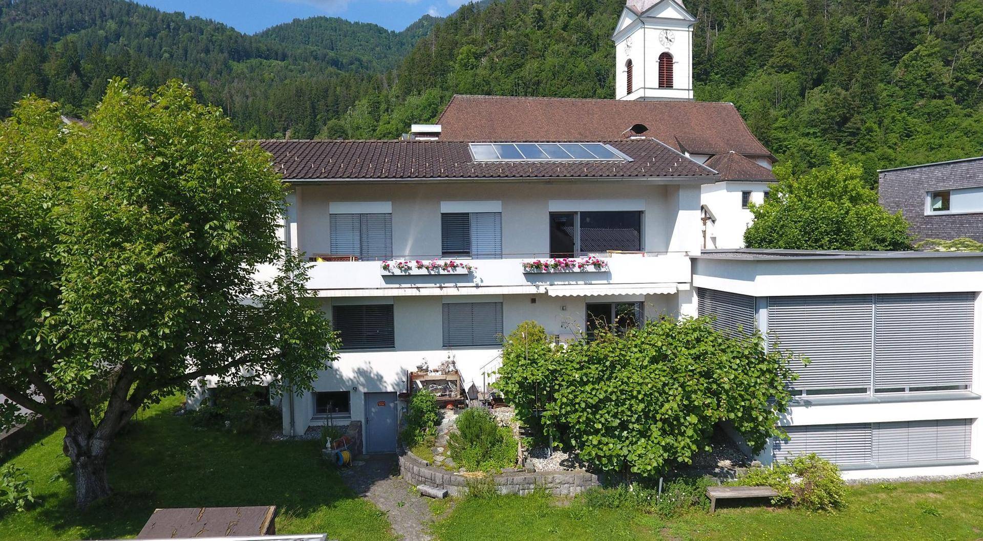 Im Zentrum von Nüziders befindet sich dieses Wohnhaus mit zwei Wohnungen. In der Nähe befindet sich die Bäckerei, Apotheke, Arztpraxis, Banken und das Gemeindeamt. Der Kindergarten, Schulen und ein Lebensmittelgeschäft sind auch sind in wenigen Gehminuten erreichbar – ebenso die Bushaltestelle und die ÖBB-Haltestelle. Das Haus überzeugt durch die zentrale Lage und die traumhafte Aussicht. Im Erdgeschoß befindet sich die Wohnung TOP 1 mit ca. 174 m² und im 1. Obergeschoß die Wohnung TOP 2 mit ca. 85 m². Ein Keller und zwei Garagen sind ebenfalls vorhanden. Der großzügige Garten lädt zum Verweilen und Entspannen ein. Im Jahr 2002 wurde ein Anbau errichtet und die Fenster getauscht. Weiters wurde eine Pelletsheizung und eine Solaranlage errichtet.