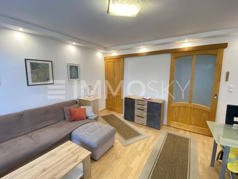 + Moderne Küche mit kleinem Essplatz + Wohnzimmer mit Esstisch + Badezimmer, WC extra + 2 Schlafzimmer + Eingangsbereich
