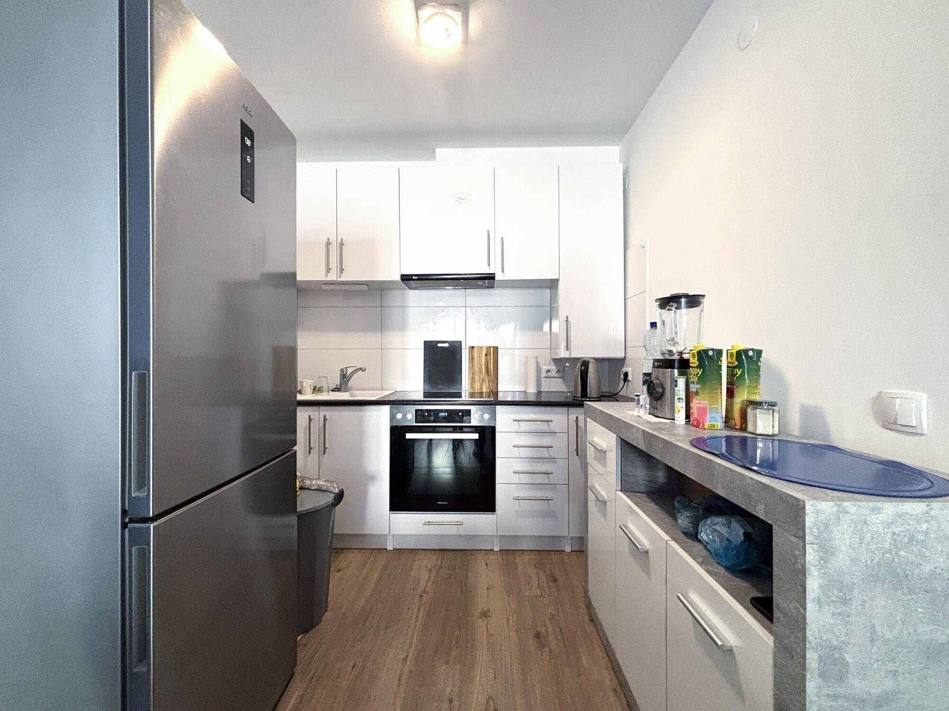 Das Apartment hat eine moderne und hochwertige Ausstattung. Die Wohnung verfügt über eine voll ausgestattete Einbauküche, die übrigen Räume werden unmöbliert übergeben. Die Küche verfügt über einen E-Herd, Backofen, Dunstabzug, Spüle, Einbaukühl- und Gefrierschrank sowie viel Stauraum in Ober- und Unterschränken. Im Badezimmer gibt es eine Dusche und einen Waschmaschinenanschluss. Ein separates WC, ein geräumiges Vorzimmer mit Gegensprechanlage und ein Abstellraum machen die Wohnung komplett.