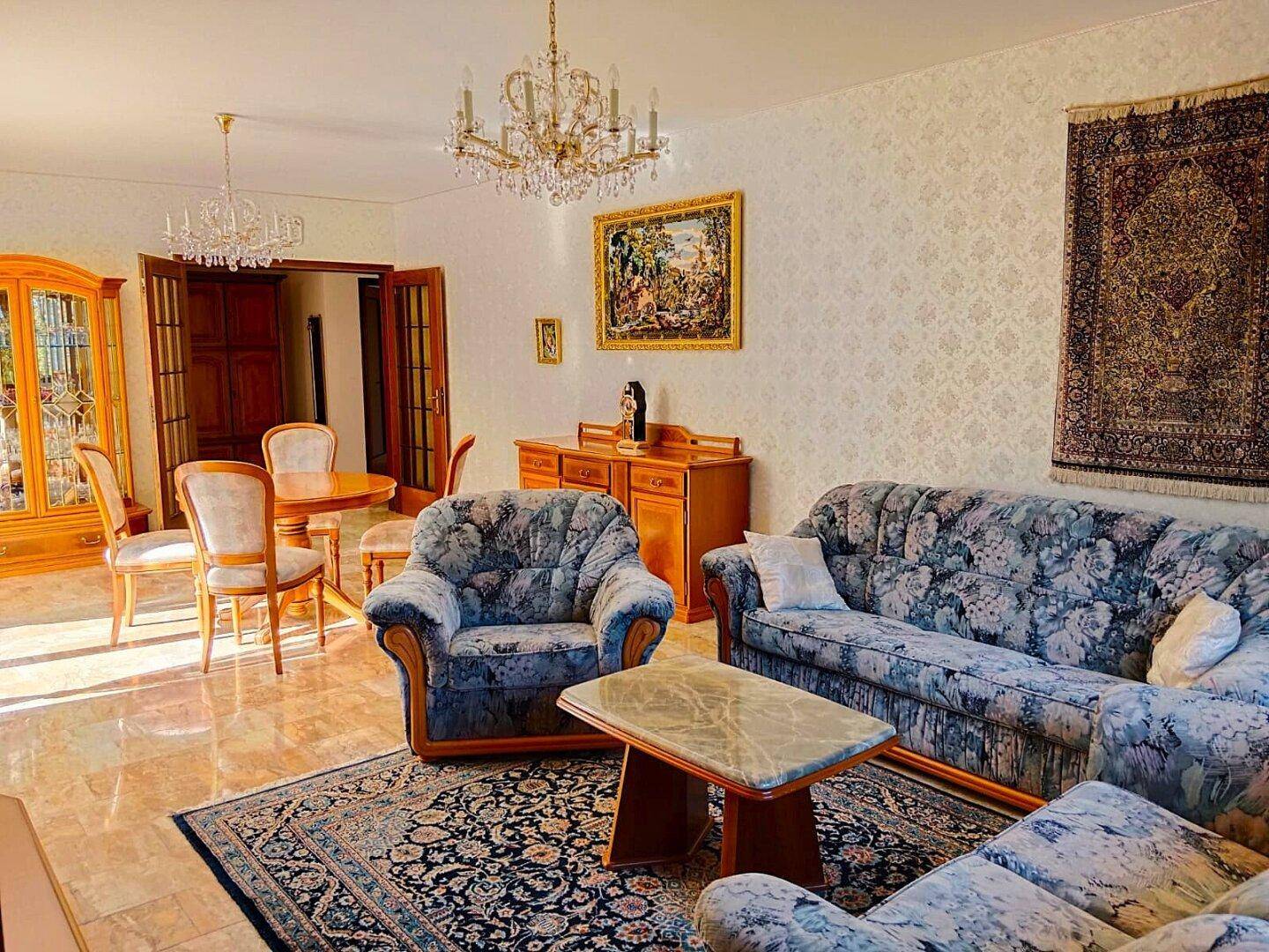 - Geräumiges Wohnzimmer mit direktem Zugang zur Terrasse und zum Garten!