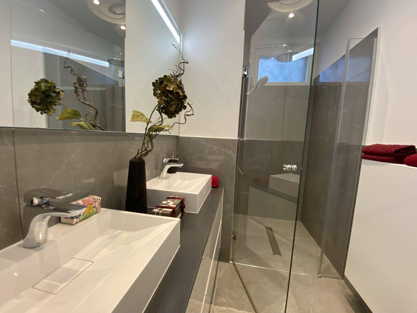 Eine Doppelgarage unterhalb der Wohnung mit einer Größe von 32m2 für 2 Autos kann angemietet werden. Die Garage öffnet sich Richtung Garten und hat auch eine kleine Küche integriert. Die Wohnung liegt am Ende einer Sackgasse in Ruhelage. Ein Tennisclub mit Schwimmbad befindet sich wenige Meter entfernt.
