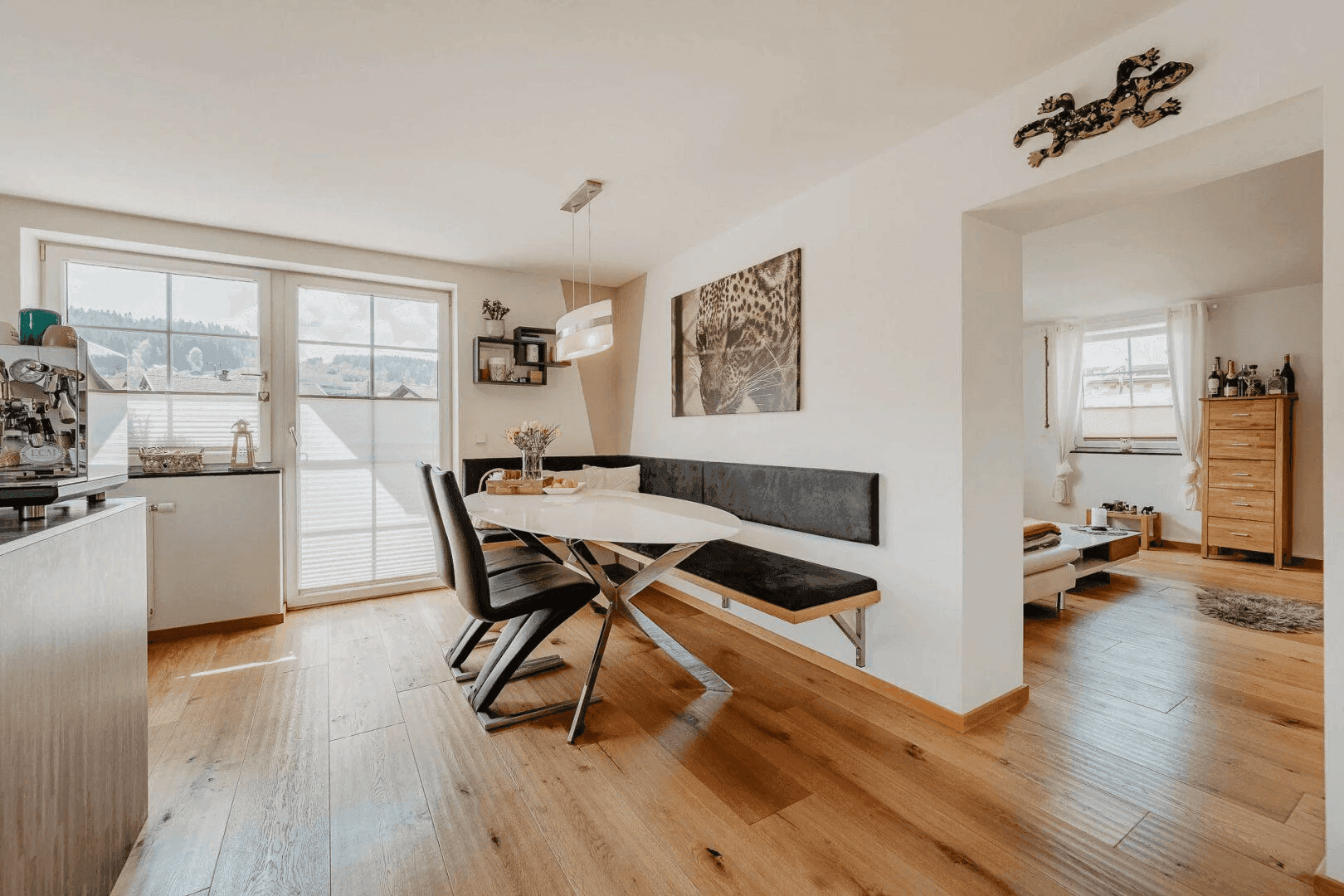 Wir vermieten in Kirchbichl eine helle, vollmöblierte Wohnung mit zwei Terrassen. Die Wohnung verfügt über ein großzügiges Schlafzimmer mit Einbauschrank, eine voll-ausgestattete Küche, Wohnzimmer und ein Badezimmer mit Dusche und Badewanne auf ca. 77 m2 zzgl. ca. 25 m2 Terrassenflächen.