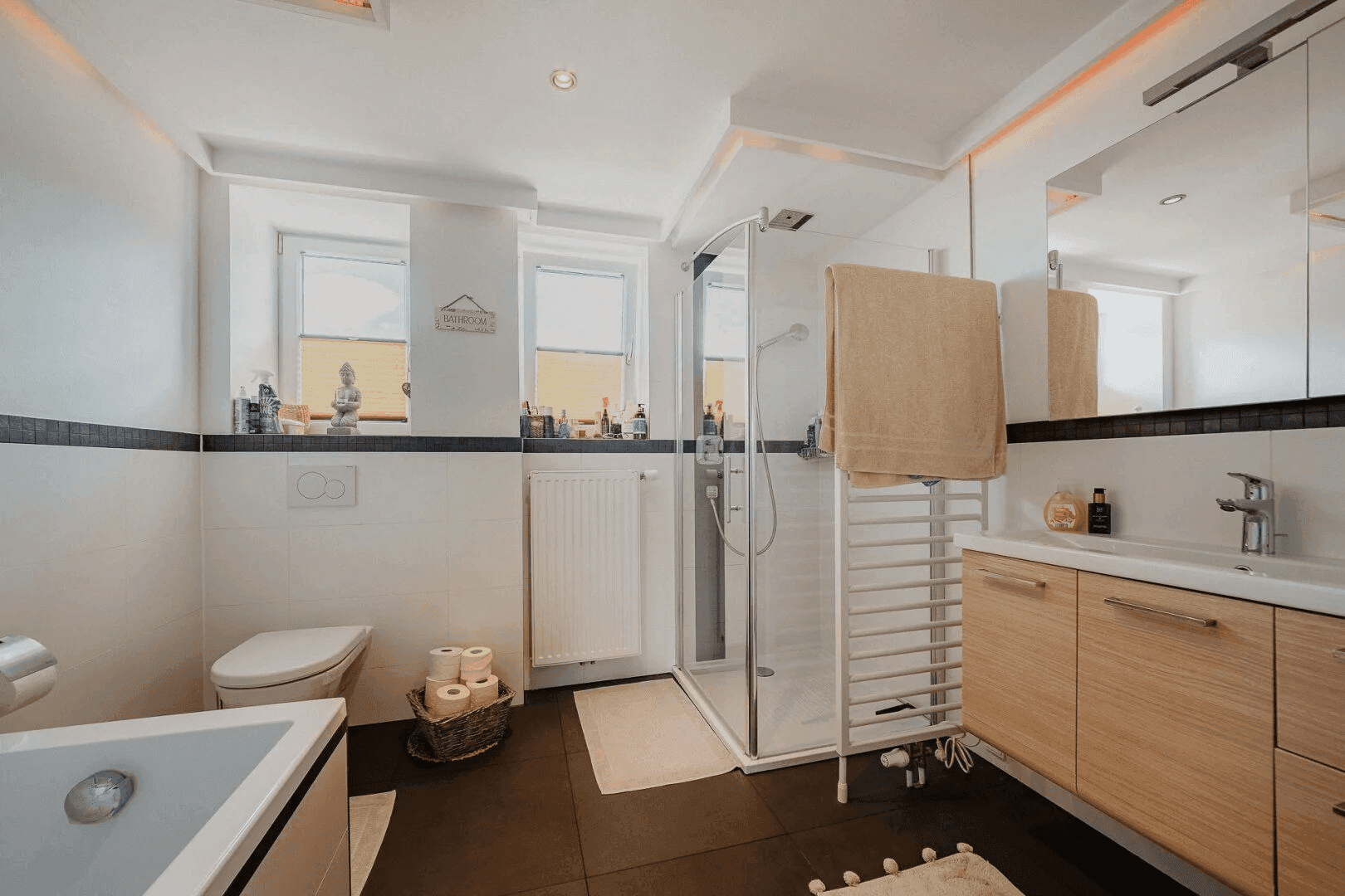 • monatlich € 1.500,00 inkl. Betriebskosten • kernsaniert im Jahr 2013 • hochwertiges Badezimmer mit Dusche und Badewanne • Echtholz-Parkett handgehobelt in Eiche natur • DAN-Einbauküche mit Elektrogeräten • großer Einbauschrank im Schlafzimmer • Doppelbett • Große Couch mit Wohnwand • Eckbank mit Esstisch • Garderobe • Sämtliche Lampen und ind. Beleuchtung vorhanden • Carport vorhanden • Abstellmöglichkeiten im Keller vorhanden • Abstellmöglichkeiten für Fahrräder vorhanden • Kaution 3 Monatsmieten • verfügbar ab 01.12.2025