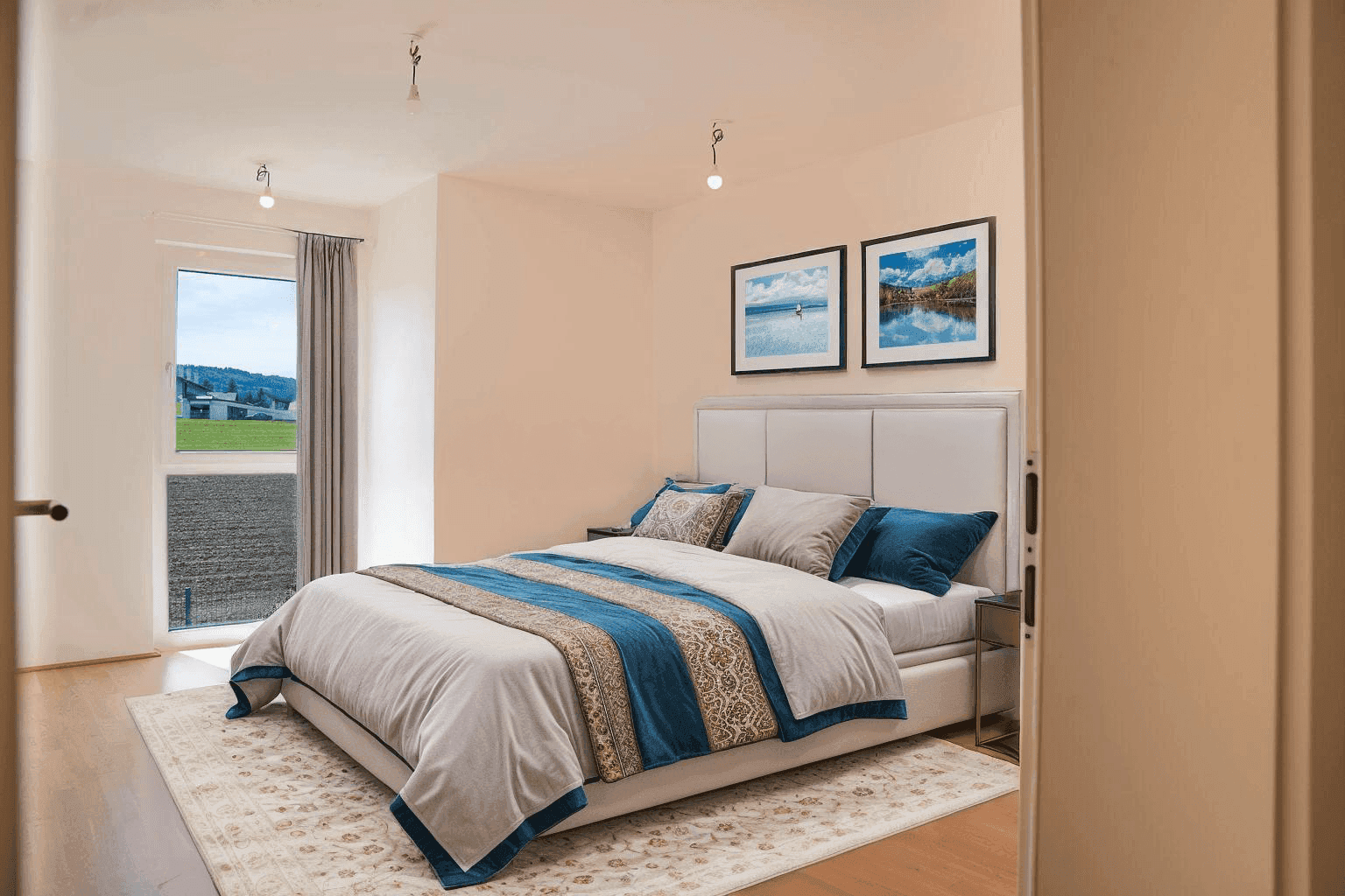 Die Wohnung verfügt über zwei helle Schlafzimmer und einen großzügigen Wohn-/Essbereich sowie ein Badezimmer mit Villeroy & Boch Sanitäranlagen. Zur hochwertigen Ausstattung gehören eine voll ausgestattete Einbauküche, Parkett- und Laminatböden, elektrische Raffstores an Fenstern und Türen sowie ein Personenaufzug. Die Wärmeversorgung erfolgt über eine zentrale Pellet-Heizanlage mit Fußbodenheizung (HWB: 30 kWh/(m²a), fGEE: 0,66). Zusätzlich stehen ein Tiefgaragenstellplatz und ein PKW-Freistellplatz zur Verfügung. Haustiere sind erlaubt und die Wohnung ist auch für eine Wohngemeinschaft geeignet.