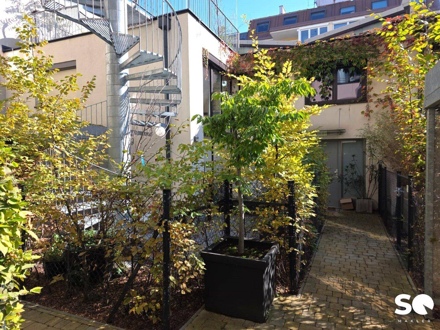 Dieses attraktive Eigentum besticht durch seinen modernen Baustil, das klassische Flachdach und die durchdachte Raumnutzung. Besonders hervorzuheben ist der eigene Dachgarten. Auf Wunsch kann ein Tiefgaragenstellplatz für 21.500 € erworben werden.