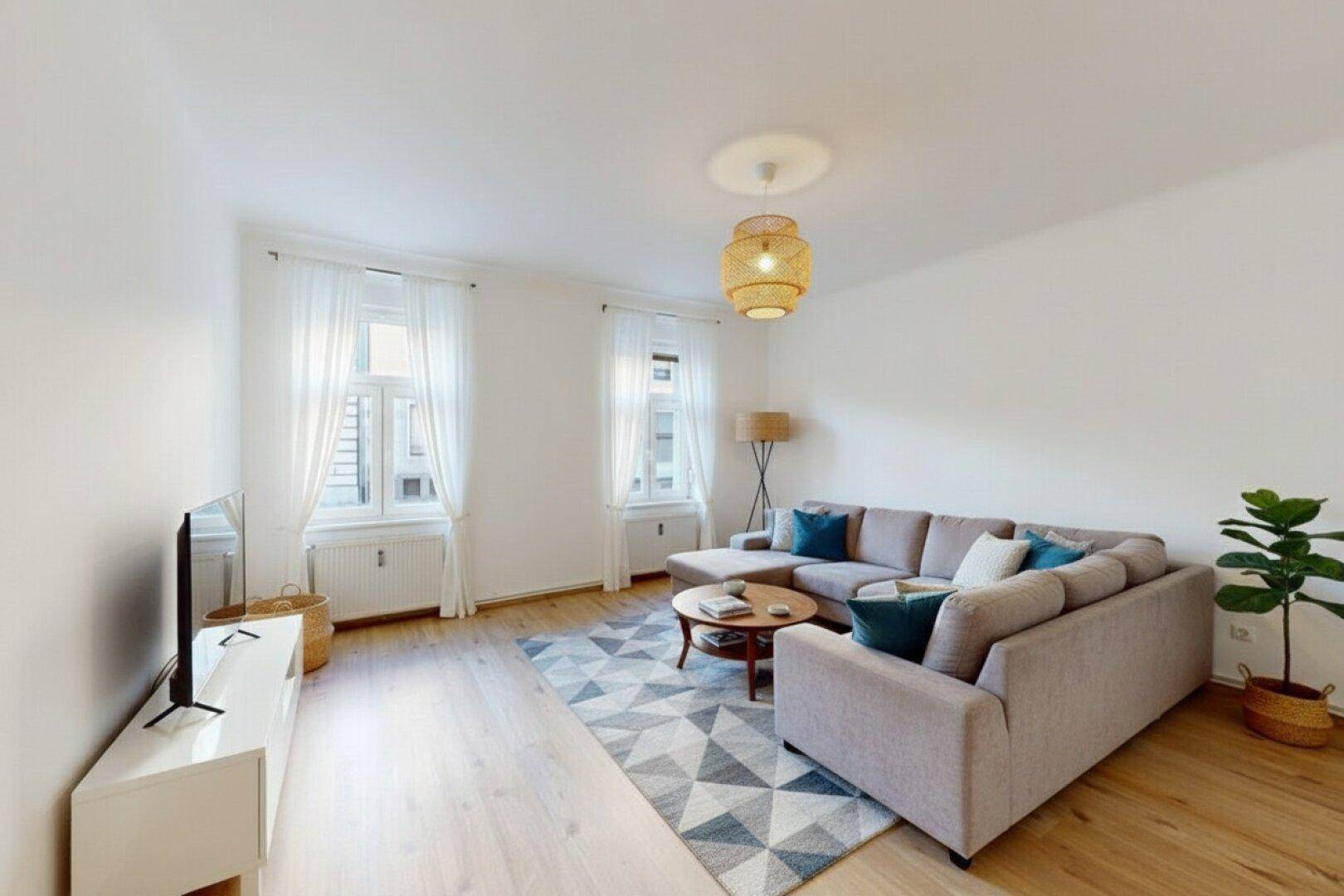 Das Wohnzimmer bildet das Herzstück der Wohnung. Das Schlafzimmer ist zum Innenhof ausgerichtet und bietet dadurch eine angenehme, ruhige Atmosphäre. Eine separate Küche mit Platz für einen Essbereich, ein Badezimmer mit Dusche sowie ein einladender Vorraum runden das Raumangebot ab.