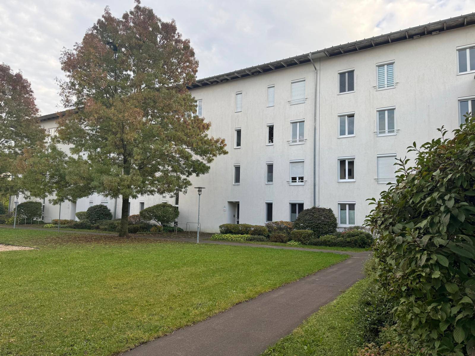 Die Wohnanlage befindet sich in einer großzügigen Grünfläche mit vielen Bäumen.