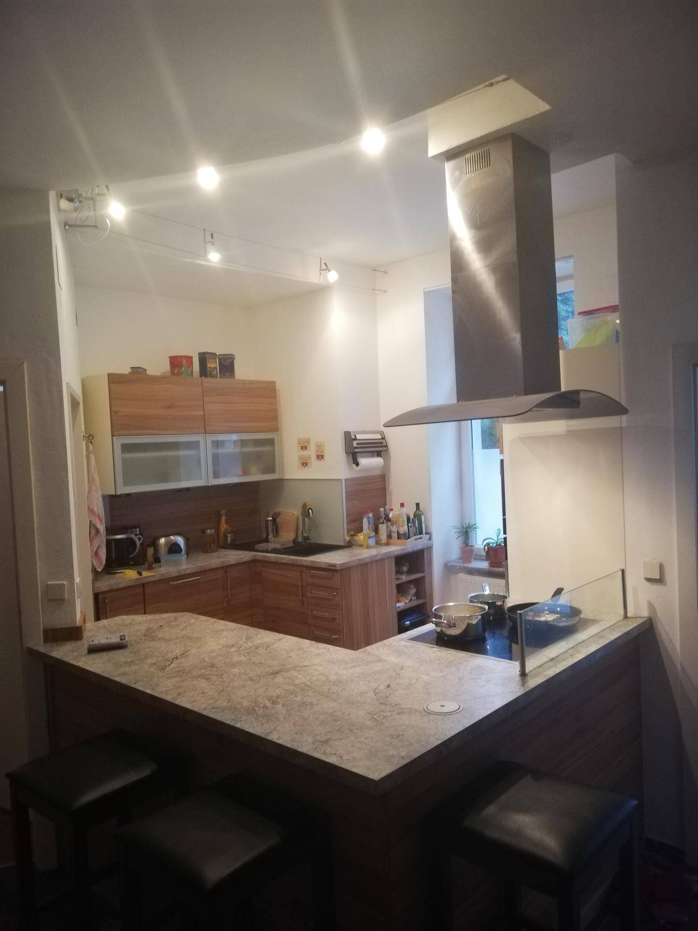 Die Wohnung hat ca. 115 qm, ein großes Wohn-/Esszimmer, eine offene Küche und getrenntes Bad und Klo. Grundsätzlich haben wir fünf Zimmer, von denen drei als Schlafzimmer genutzt werden und eines als Gästezimmer/Arbeitszimmer genutzt wird. Die Wohnung ist sehr hell und freundlich, und lädt zum gemütlichen verweilen und wohlfühlen ein.