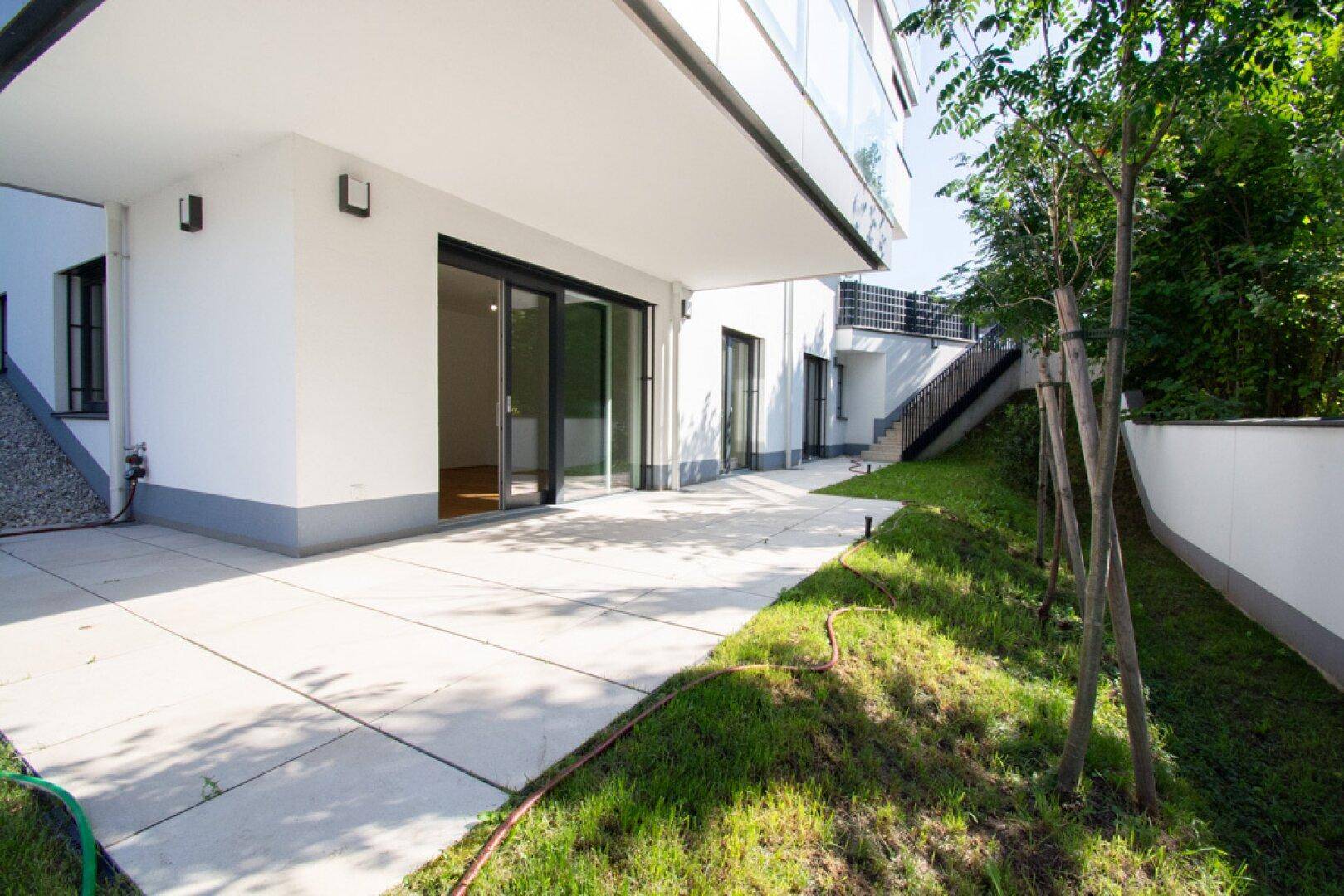 Ein besonderes Highlight dieser Wohnung ist die 31 m² große Terrasse, die von allen drei Zimmern aus begehbar ist – ein echtes Plus für sonnige Stunden im Freien oder entspannte Abende mit Freunden. Der direkt angrenzende, rund 118 m² große Garten mit leichter Böschung bietet zusätzlichen Erholungsraum im Grünen.