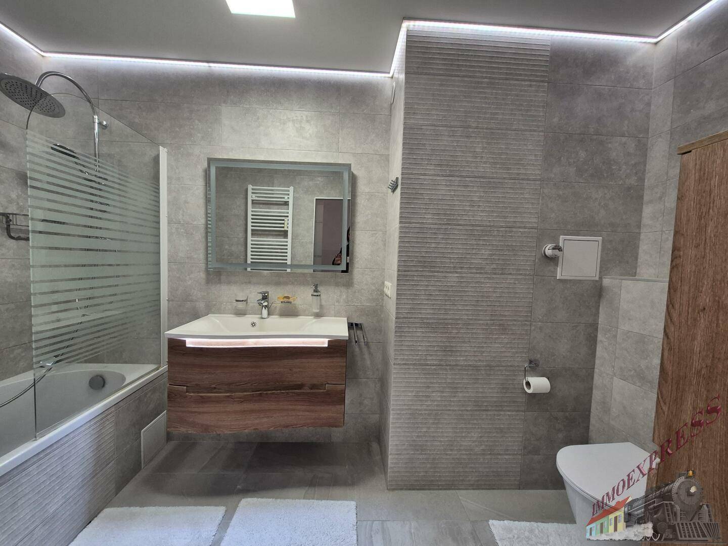 • geschmackvolles Badezimmer mit Badewanne mit Dusche, Waschbecken sowie Toilette