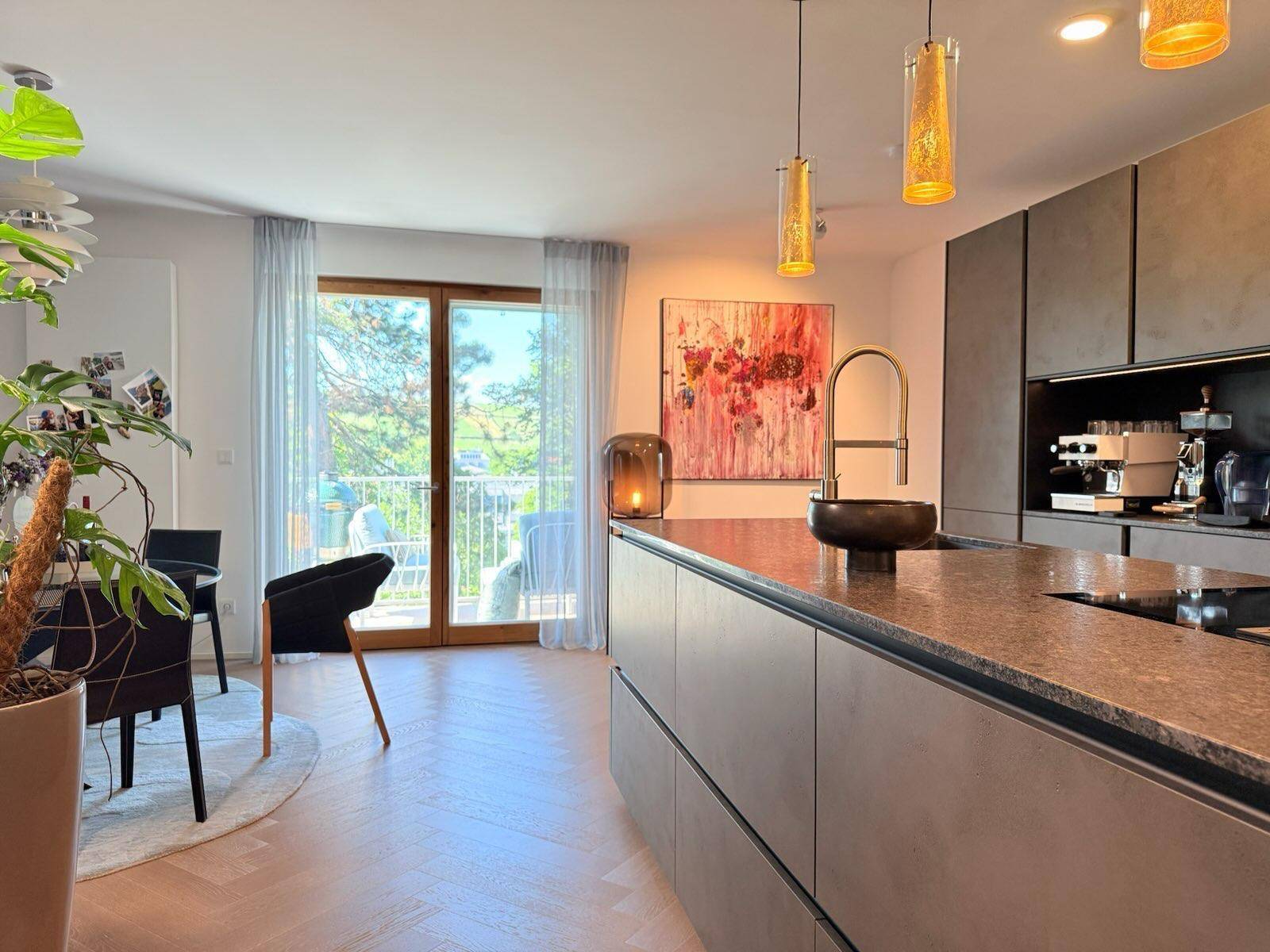 Ein besonderes Highlight: Trotz der Hanglage gelangen Sie beinahe ebenerdig in die Wohnung – und genießen dennoch jene traumhafte Aussicht, die sonst nur Dachgeschosswohnungen vorbehalten ist. Von hier eröffnet sich ein atemberaubender Blick über die Weinberge, begleitet von einem Gefühl von Weite, Ruhe und Privatsphäre.