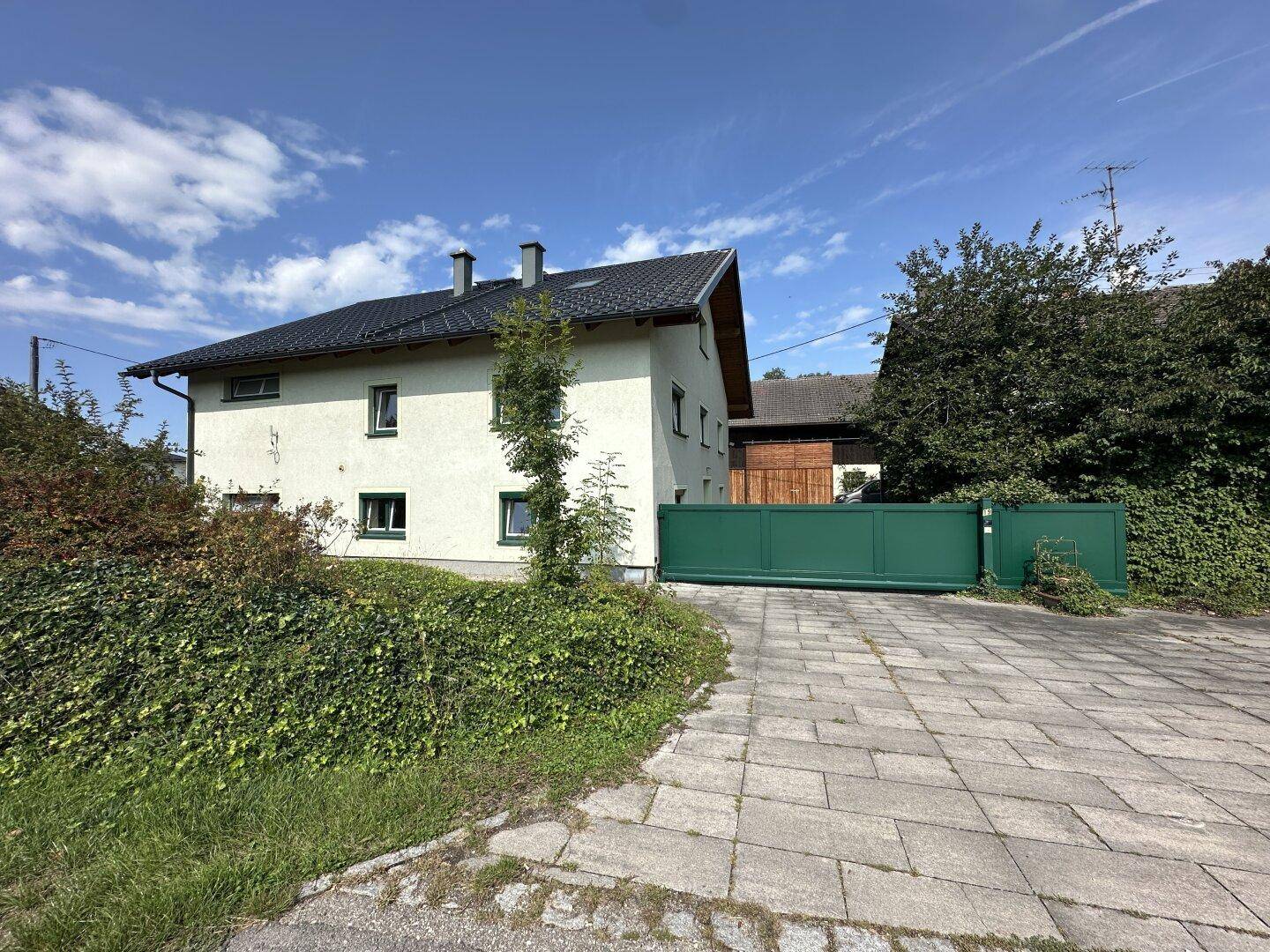 Das Grundstück liegt an einer wenig befahrenen Straße, ruhig am Waldrand und dennoch offen zur Welt. Hier ist Platz für Kinder, Tiere und Ideen.