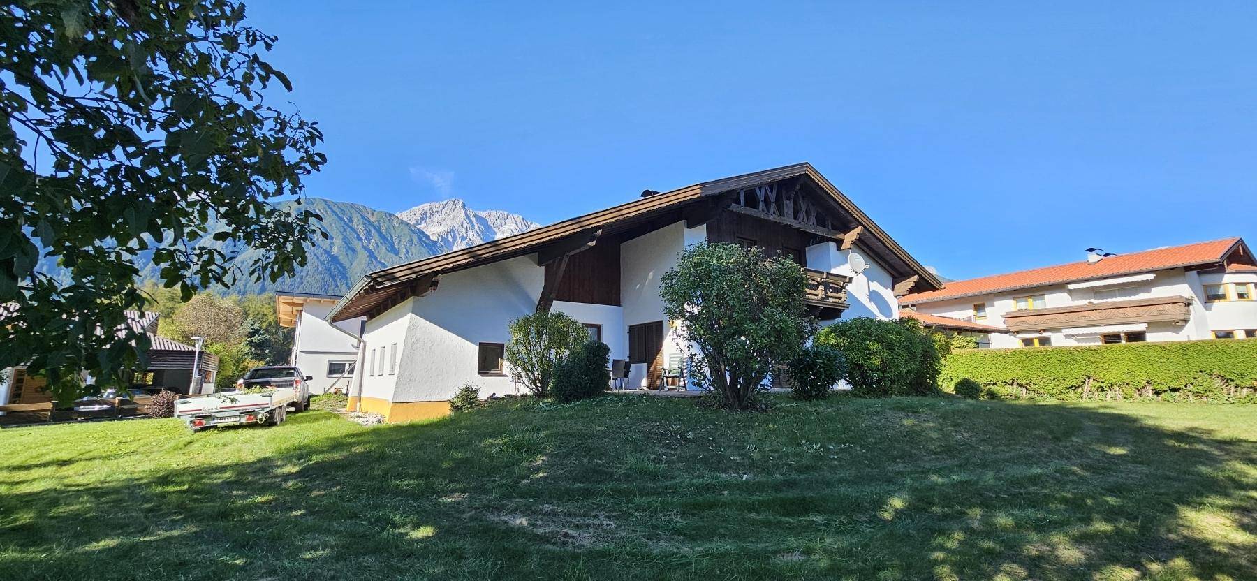 Einfamilienhaus mit viel Platz in Mieming-Frohnhausen Das besondere Einfamilienhaus mit genehmigtem Freizeitwohnsitz befindet sich in der Gemeinde Mieming, im Ortsteil Frohnhausen, und steht auf einem großzügigen Grundstück mit etwa 1.070 m² Fläche. Die leicht erhöhte Lage des Hauses bietet eine schöne Aussicht und ist eingebettet in einen gepflegten Garten, der zum Verweilen und Entspannen einlädt.
