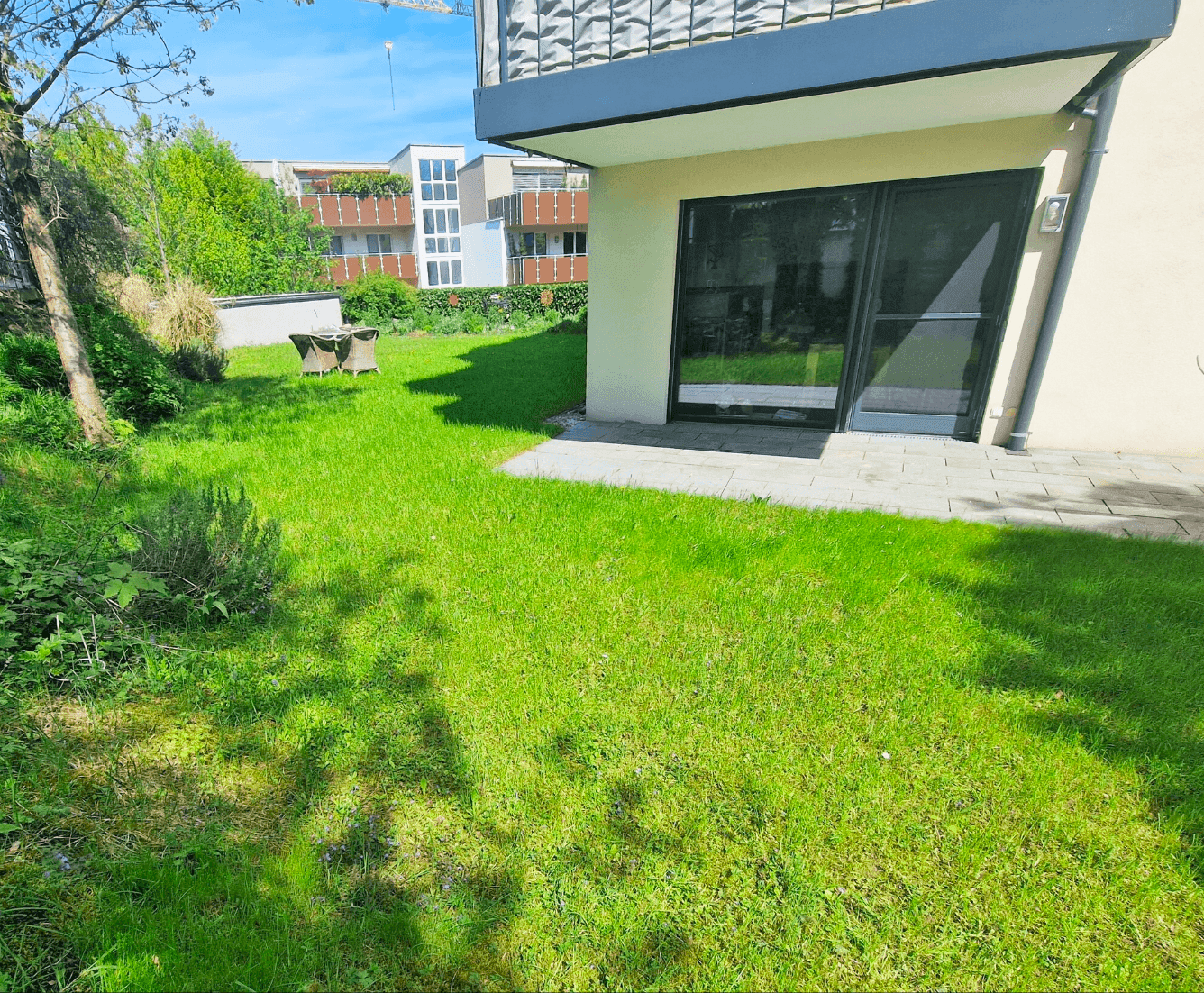 Durch die Hanglage gibt es auch im Untergeschoss einen Zugang zu einem zweiten Gartenbereich (21 m²) mit Terrasse – ideal als Rückzugsort.