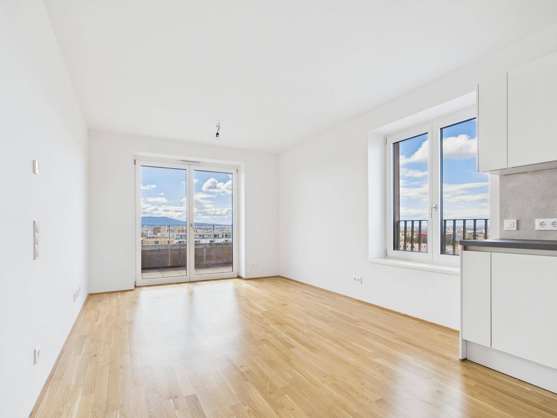 Diese Wohneinheit befindet sich im 6. Obergeschoss mit traumhaftem Ausblick über Wien und ist Teil eines modernen, bunten Kleinhauses, das insgesamt nicht mehr als 30 Einheiten umfasst. Die Wohnung selbst bietet eine großzügige Fläche und besteht aus drei Zimmern sowie einem südseitig ausgerichteten Balkon.