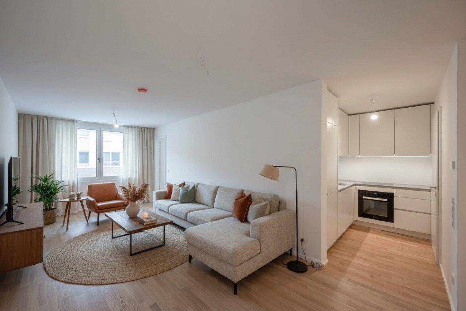 Zur befristeten Vermietung gelangt diese helle, toll aufgeteilte und sehr hochwertig ausgestattete ca. 65 m² große 3-Zimmer Neubauwohnung in einem einzigartigen Neubau in toller Lage des 6. Wiener Gemeindebezirks!