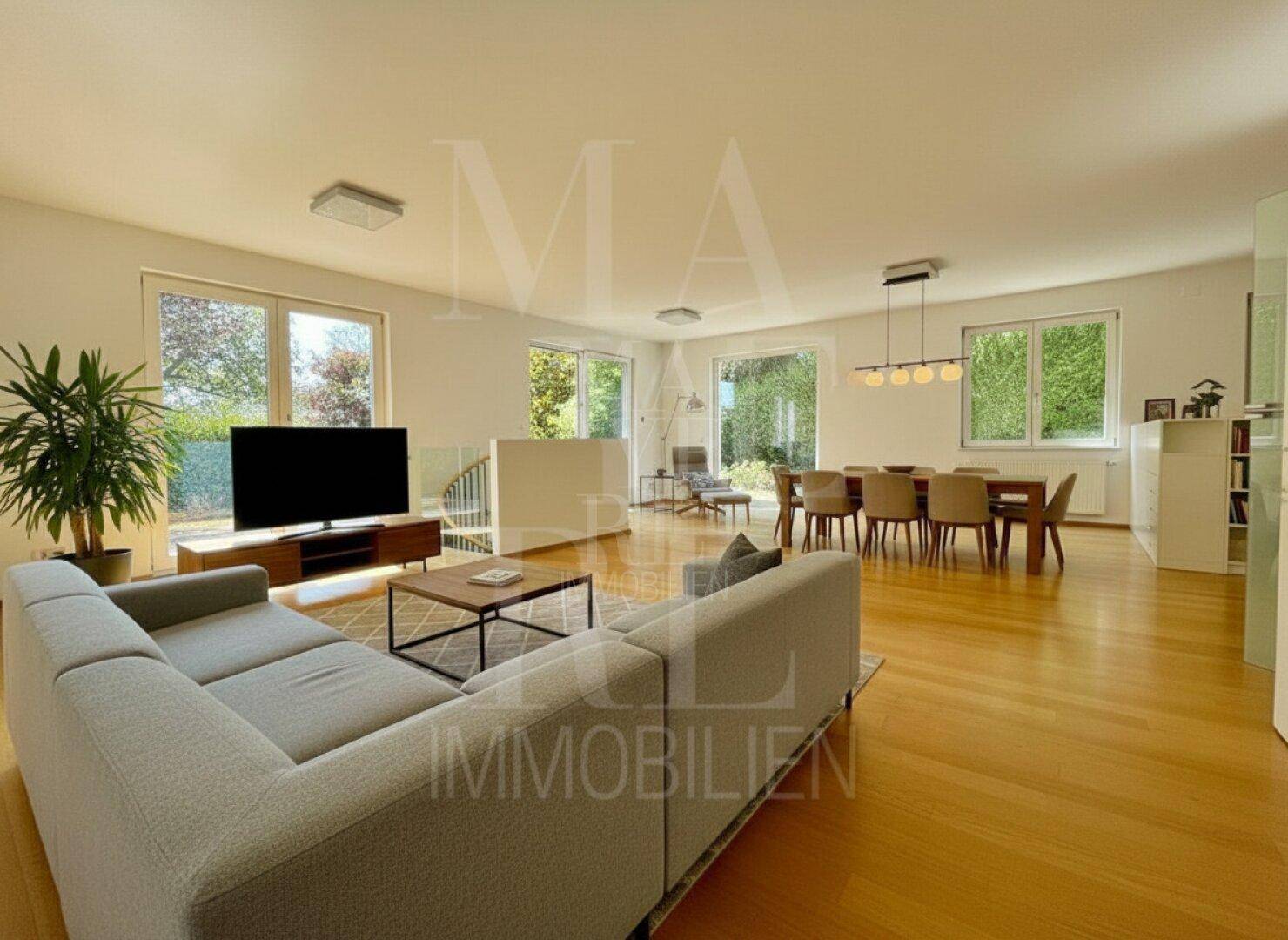 Parkett-/Fliesen-/Natursteinböden, Gasetagenheizung, Alarmanlage, Außen-Jalousien, elektrische Markise, Waschmaschinenanschluss im AR, Toilette mit Bidet Funktion, hochwertige Tischler-Einbaumöbel, offener Kamin im Wohnzimmer, SAT-Anlage & Kabelanschluss, Safe, Lift