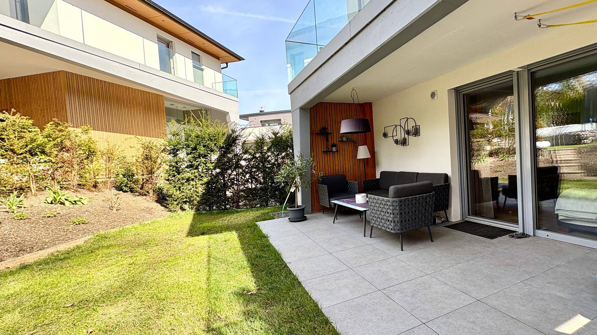 Die Liegenschaft, am Ende einer Privatstrasse (Sackgasse), liegt ruhig und idyllisch, direkt am Waldrand (Begegnung mit Rehen nicht ausgeschlossen :-) ). Aufgrund der Situierung, einander zugewandt, entstand ein tolles Familienensemble mit hoher Privatsphäre - der blickgeschützte Garten ergänzt das Angebot. Genießen Sie die Sommermonate mit tollem Salzwasser-Pool (beheizbar, Abdeckung, Gegenstromanlage, Beleuchtung, Pooldusche (kalt und warm)). Über kühlere Abende helfen diverse Außenstrahler hinweg.