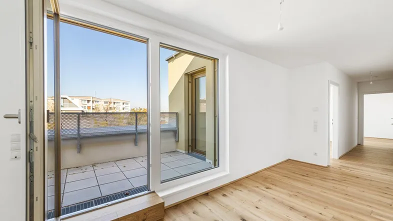 AUSSTATTUNGDie 3-Zimmer-Wohnung ist im Dachgeschoss gelegen und bietet eine Wohnfläche von ca. 76,26 m² sowie eine herrliche Terrasse mit ca. 7,43 m².