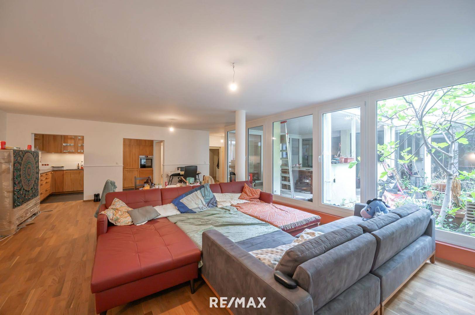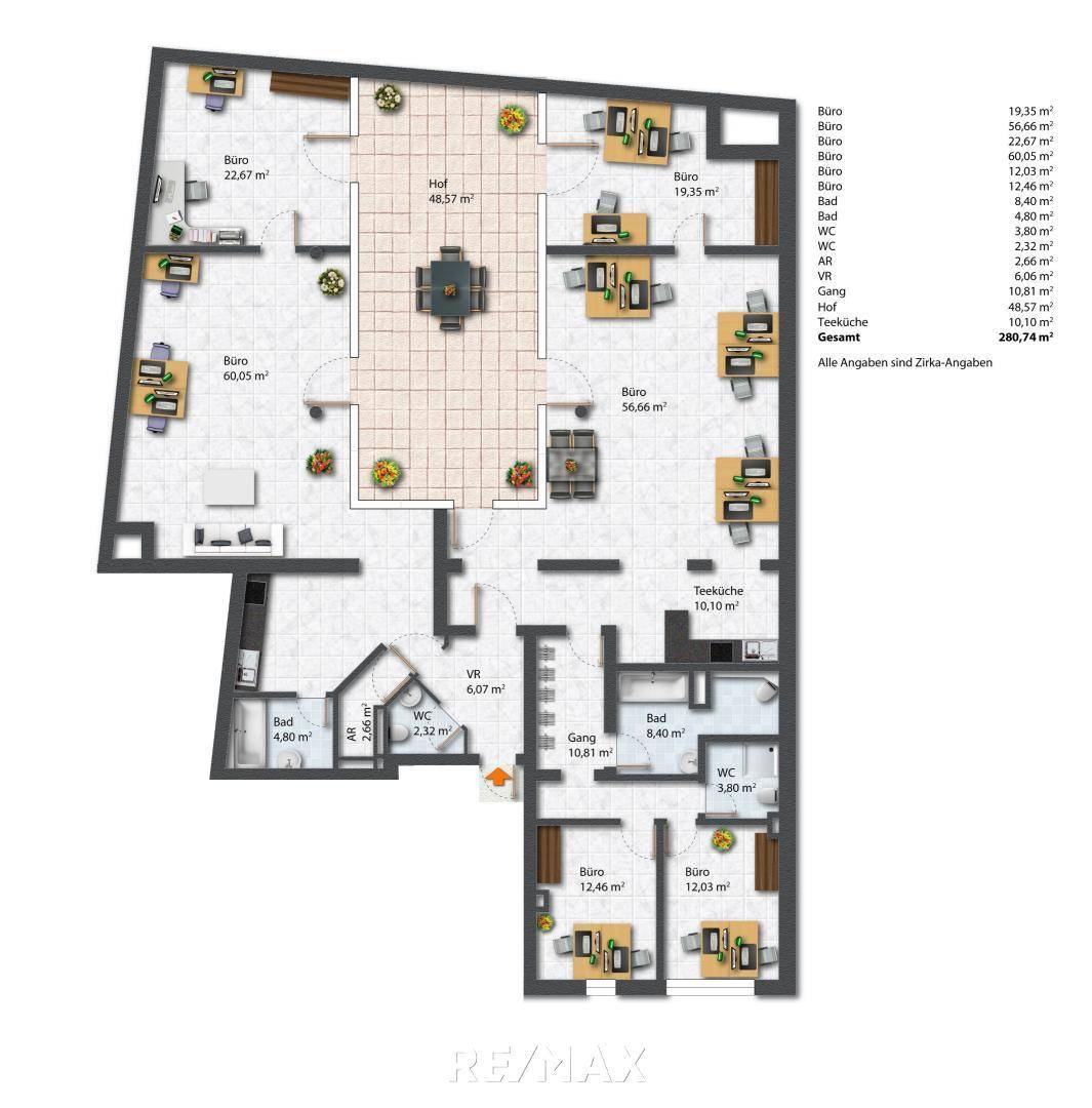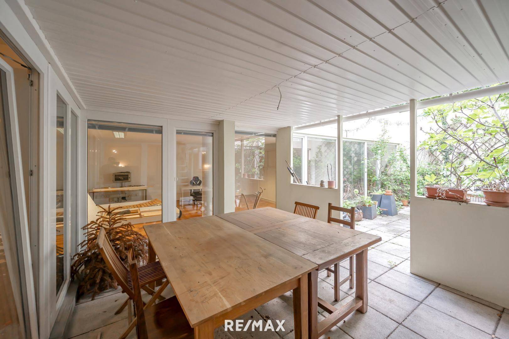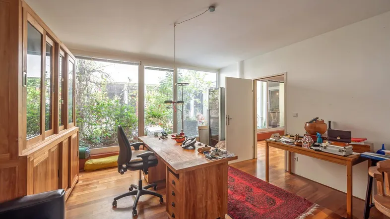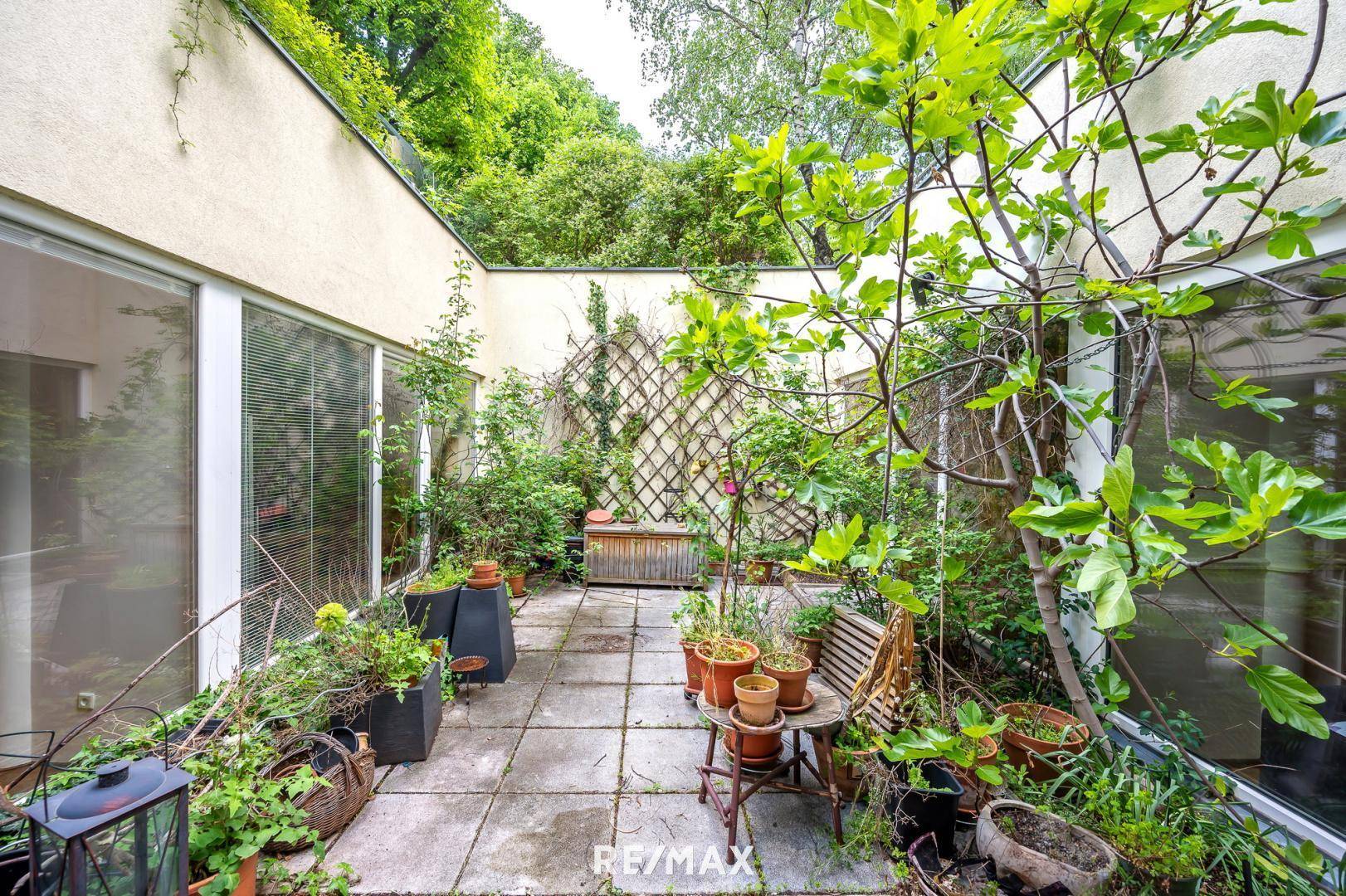 Ein besonderes Highlight ist der ca. 50 m² große sonnige & grüne Innenhof, der mit einem atemberaubenden Blick ins Grüne begeistert. Genießen Sie hier Ihre Auszeit im Freien – ob bei einem gemütlichen Frühstück oder einem entspannten Feierabend mit einem Glas Wein, nach einem anstrengenden Bürotag.