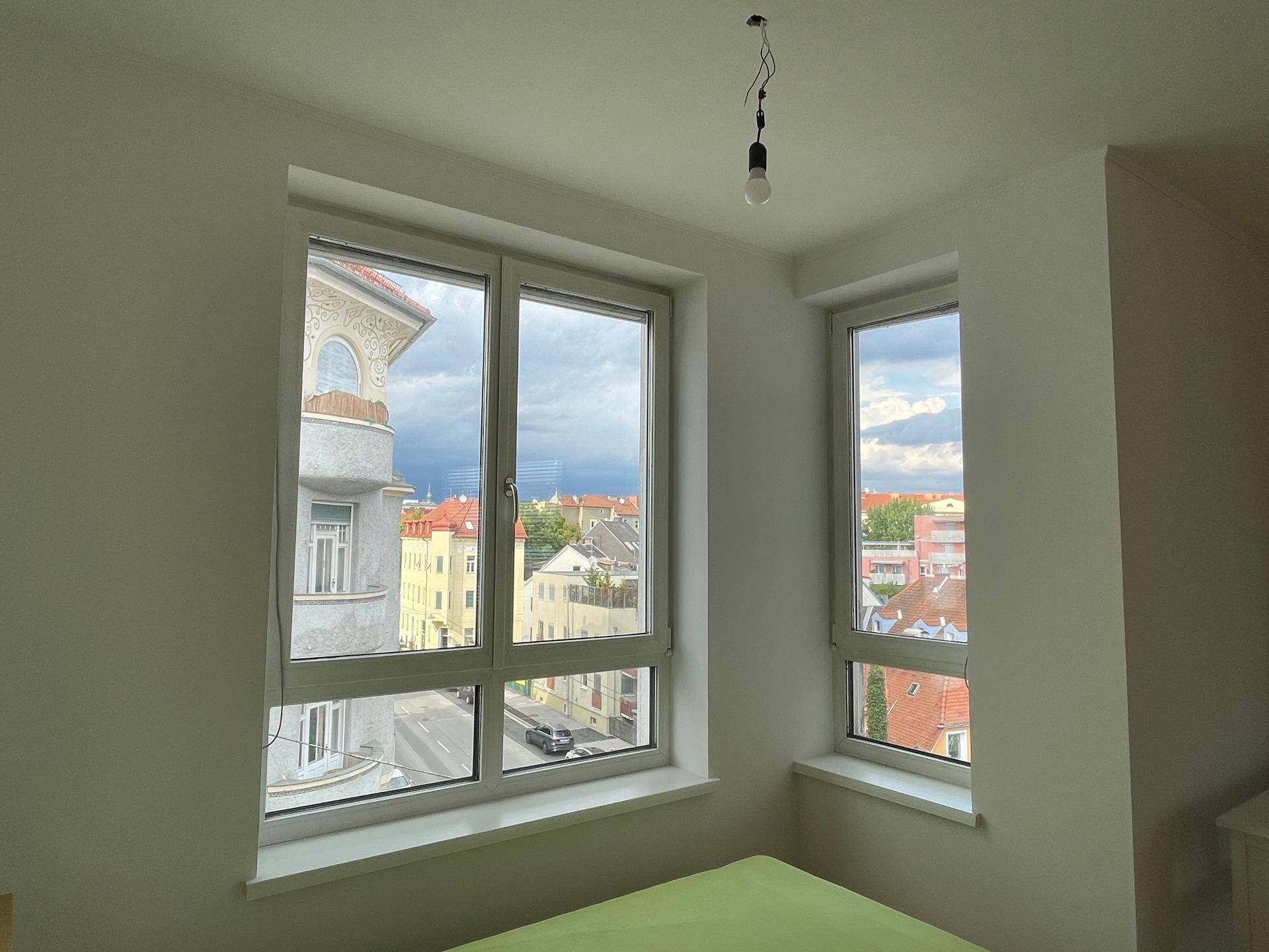Bei Bedarf können ein Ikea-Bett (ohne Matratze und Leintuch), Kästchen, Nachtkästchen und ein Schreibtisch (siehe Fotos) übernommen werden, ebenso die Deckenlampen. Die Wohnung wurde frisch ausgemalt, die Installationen erneuert.
