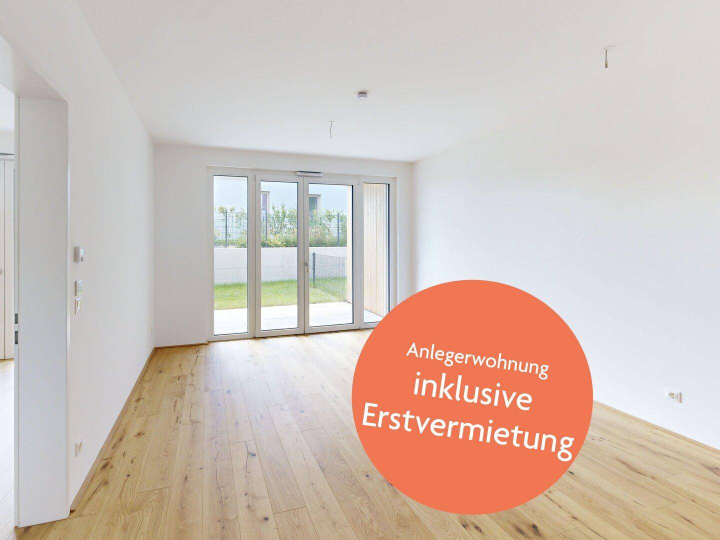 Die freundliche, provisionsfreie 2-Zimmer- Wohnung Top 02 befindet sich im Haus 75e und besticht mit sonnigen Freiflächen und intelligentem Grundriss. Die helle Wohnküche mit optisch abgetrenntem Kochbereich ist nach Süden orientiert und führt auf die Loggia direkt weiter in den kleinen, eigenen Garten. Das Schlafzimmer bietet ebenfalls Ausgang auf die Loggia. In der Wohnung sind ein hochwertiger Parkettboden sowie Feinsteinfliesen im Bad/WC verlegt. Für angenehmes Wohlfühlklima sorgt im Winter eine Fußbodenheizung. Heißen Sommertagen wirkt ein außenliegender, elektrisch gesteuerter Sonnenschutz sowie eine Raumtemperierung über die Fußbodenheizung entgegen (Abkühlung um 2-3 Grad mittels Wärmepumpen-System, ohne fossile Energieträger).