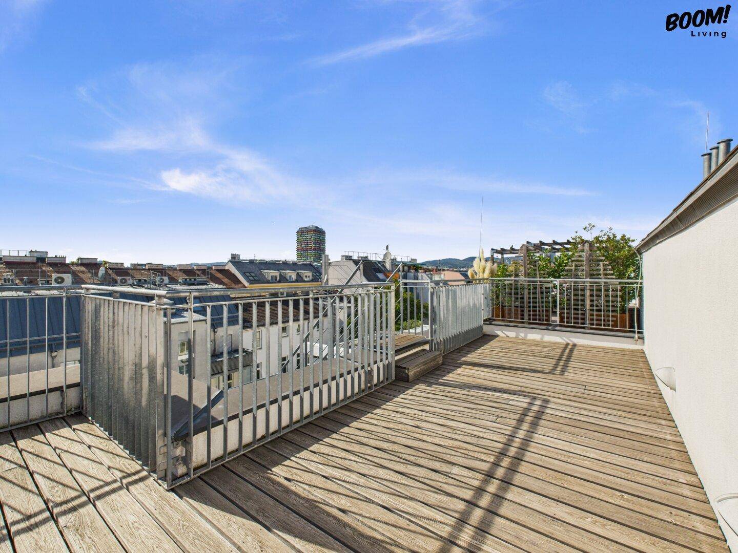 Ein absolutes Highlight sind die großzügigen Außenflächen: Genießen Sie entspannte Stunden im Freien, lassen Sie den Alltag hinter sich oder verbringen Sie gesellige Abende mit Freunden – hier eröffnet sich ein einzigartiges Wohngefühl über den Dächern der Stadt.