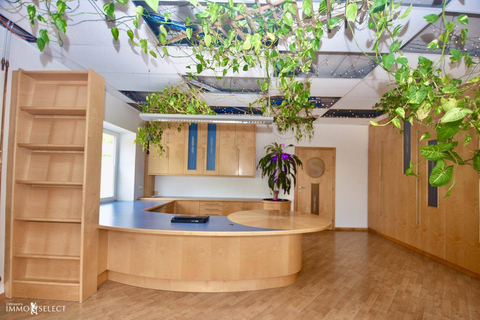 Das Büro ist voll ausgestattet und bietet eine durchdachte Raumstruktur für effizientes Arbeiten: Drei Schreibtische, ein zentraler Besprechungstisch, eine Teeküche, ein WC, eine Garderobe sowie ein praktischer Abstellraum stehen zur Verfügung. Die Einheit ist an eine moderne Pellets-Zentralheizung angeschlossen, verfügt über einen eigenen Elektro-Installationskreis und ist mit einem Glasfaseranschluss für schnelles Internet ausgestattet – damit sind alle Voraussetzungen für zeitgemäßes Arbeiten erfüllt.
