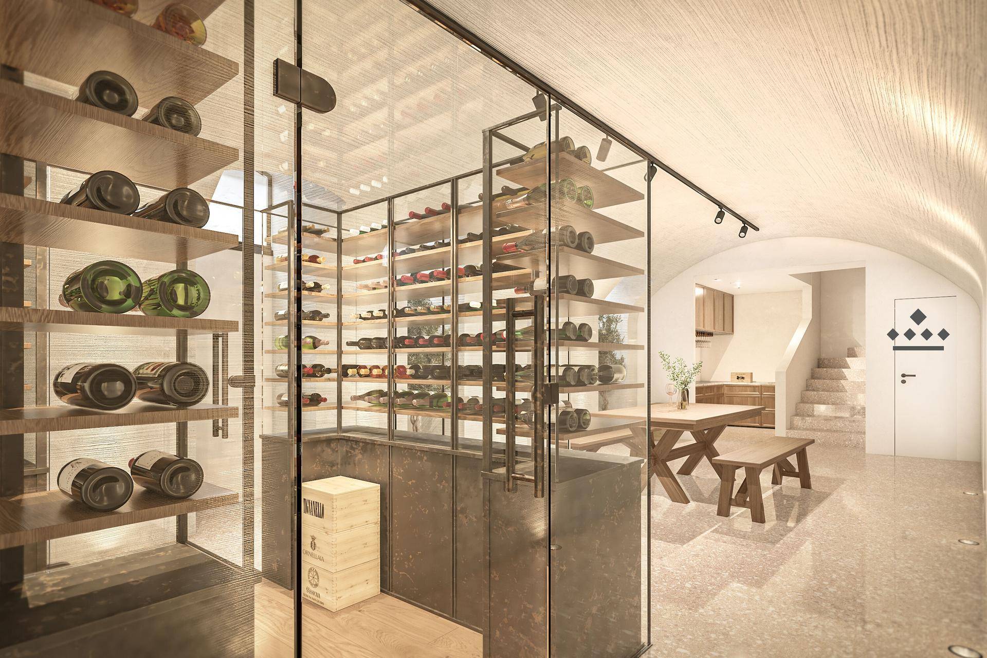 Apartment 1 bietet auf insgesamt drei Ebenen Raum für die ganze Familie. Angefangen im 1. Untergeschoß, wo sich der private, zur Wohnung gehörige, Weinkeller befindet - der Mittelpunkt jeder Feier oder jedes Zusammenkommens mit Freunden und Familie. Das Erdgeschoß stellt den Wohn- und Essbereich mit genügend Platz für eine offene Küche und großen Terrassentüren dar. Im 1. Obergeschoss befinden sich alle Schlafzimmer inklusive zwei Badezimmer samt WCs.