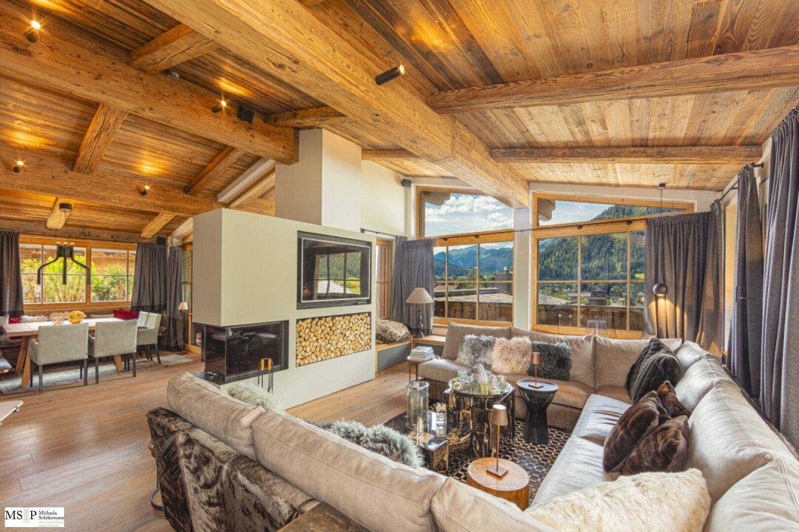 Die von den Eigentümern mit viel Liebe zum Detail, sehr geschmackvoll eingerichtete Liegenschaft verfügt über vier Schlafzimmer, jeweils mit en-suite Bädern und Ankleiden, ein SPA-Bereich mit Ruhebetten, Massageliegen, Infrarot-Kabine und Sauna, einem Whirlpool auf der innenliegenden, von 2 Schlafzimmern aus zugänglichen Terrasse, diverse praktische Abstellräume, einen Wirtschaftsraum, Technikraum (Heizungsart Erdwärme) sowie einen Skikeller. Der große, profimäßig ausgestattete Fitnessraum kann von den Eigentümern der insgesamt drei zur Wohnanlage gehörenden, separaten Häuser gemeinschaftlich genutzt werden, ebenso die Tiefgarage. Zum beschriebenen Chalet gehören insges. drei Tiefgaragenplätze.