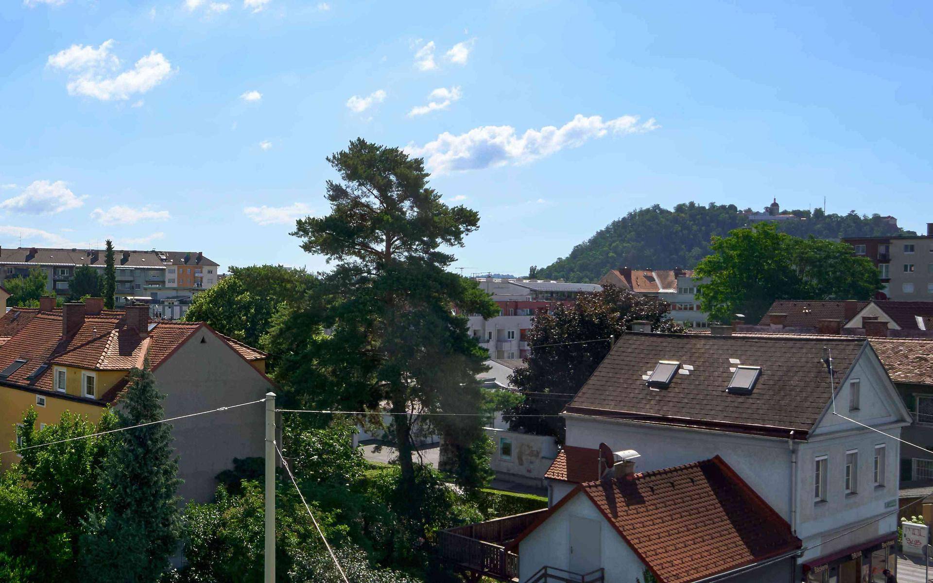 teilweise saniertes Gebäude Schöne Aussicht mit Weitblick nach Osten und Westen ausgerichtet Balkon mit 4 m² in Richtung Westen Badezimmer mit großem Fenster Lift Die Wohnung ist sonnendurchflutet und man hat großteils eine herrliche Fernsicht. Perfekte Infrastruktur wie zum Beispiel: Bäckerei, Kindergrippe, Trafik in unmittelbarer Nähe verbunden mit der Anbindung an das öffentliche Verkehrsnetz wobei sich direkt vor dem Haus eine Bushaltestelle befindet. Nähe zum Lendplatz mit den herrlichen Cafés, Bars , Restaurants und dem beeindruckendem Markt mit frischem Gemüse, Fleisch, Fisch, Blumen, Kuchen, Säfte, Blütenhonig aus umliegenden Bauernhöfen der Region.