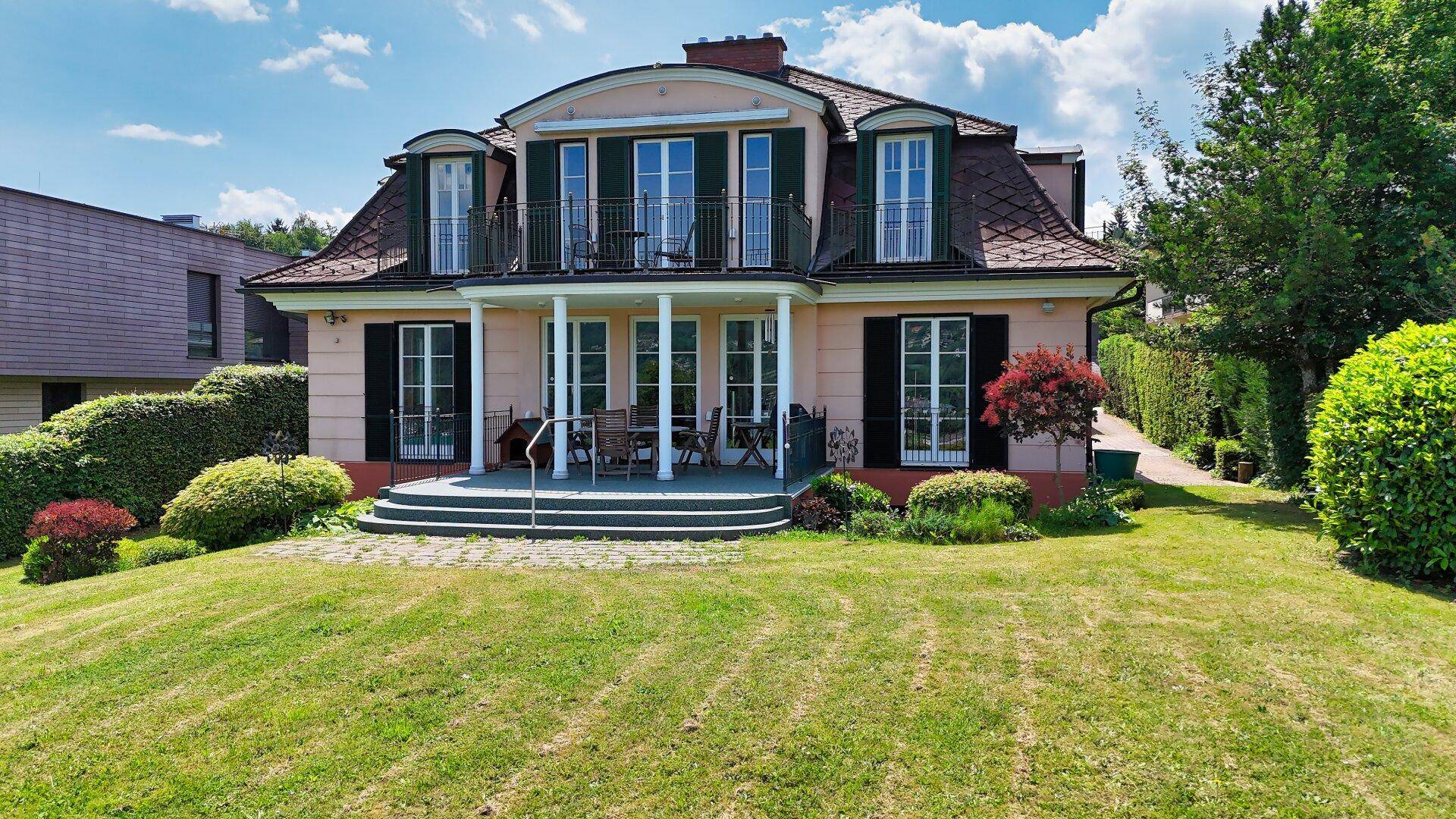 Bereits im Entrée mit großzügigem Treppenhaus empfängt Sie die Wohlfühlatmosphäre, die sich in allen Räumen dieses liebevoll gestalteten Domizils fortsetzt. Der Wohnsalon mit offenem Kamin lädt zu entspannten Stunden am knisternden Feuer ein. Der großzügige und offen gehaltene repräsentative Wohn-/Essbereich bietet viel Platz für Sie und Ihre Gäste. Die mit Markengeräten ausgestattete Küche mit separater Speisekammer lässt keine Wünsche offen. Ein Arbeitszimmer mit separatem Badezimmer bietet Platz für ungestörtes Arbeiten. Insgesamt finden sich im Objekt sechs Badezimmer und ein Gäste-WC.