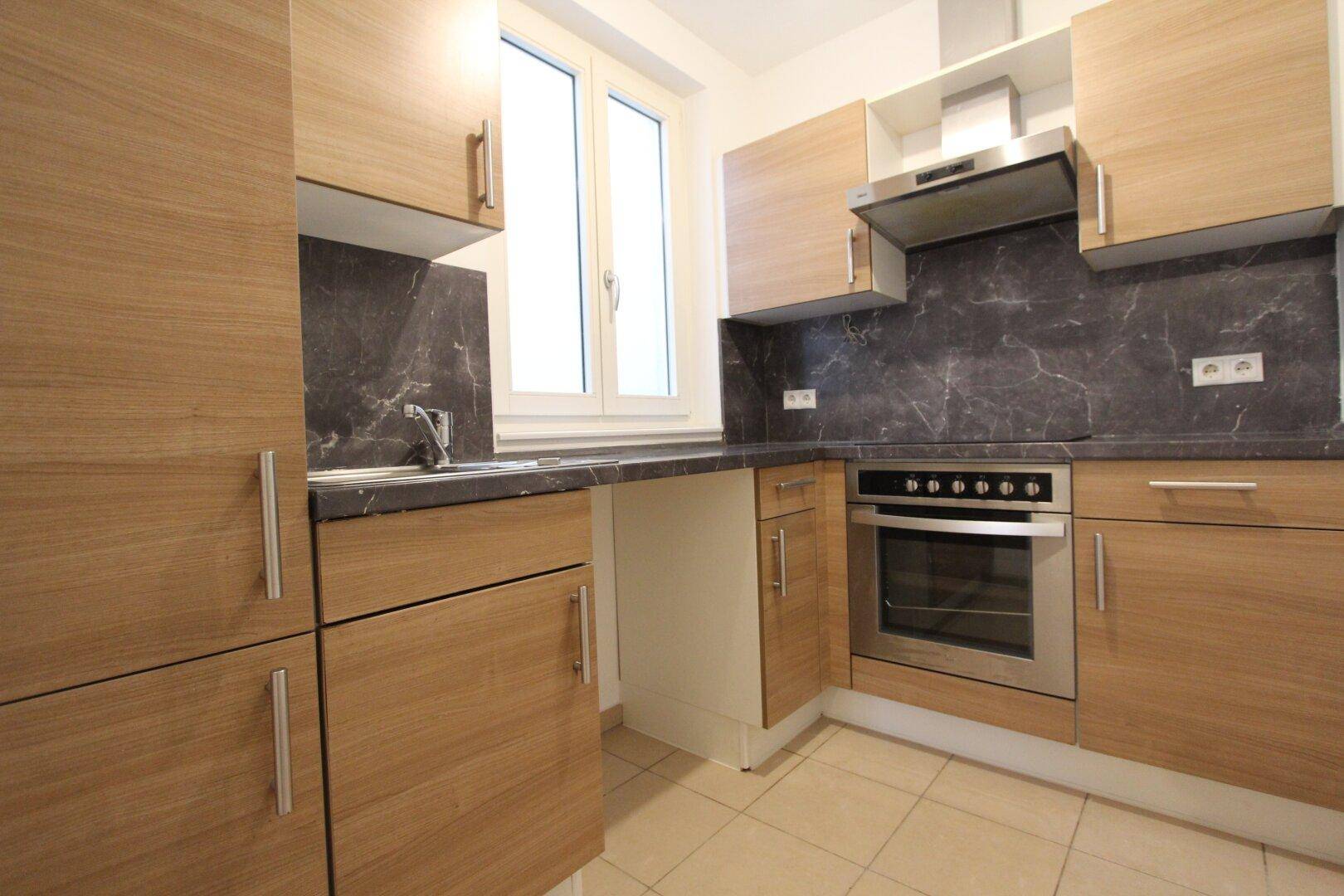 Moderne 2-Zimmer-Wohnung mit Parkettboden, 59m², 1 Zimmer hofseitig und 1 Zimmer straßenseitig, Einbauküche mit Kühlschrank, E-Herd und Dunstabzugshaube, Bad mit Wanne und WC, Vorzimmer und Küche mit Fliesenboden, Fernwärmezentralheizung, Lift.