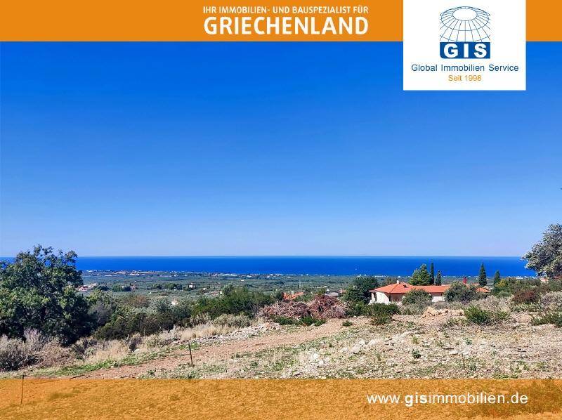 Toll gelegenes Baugrundstück in leichter Hanglage mit fantastischem Meer- und Panoramablick in Stasio bei Kyparissia auf dem südwestlichen Peloponnes.