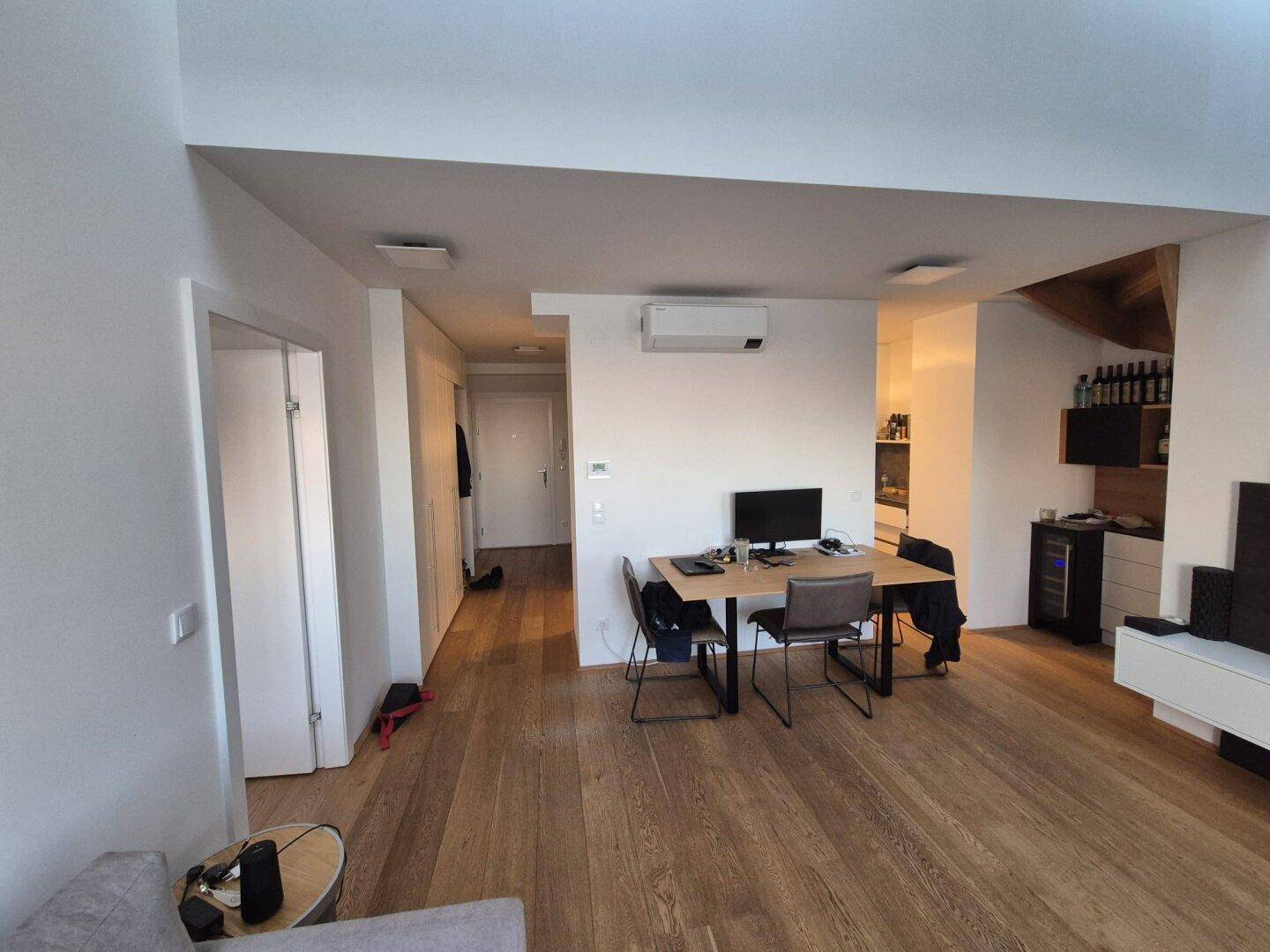 Durch die durchdachte Raumaufteilung bietet die Wohnung viel Platz zum Wohlfühlen: Der offene Wohn- und Essbereich ist lichtdurchflutet und lädt zum Verweilen ein. Die großen Fensterfronten schaffen eine helle und freundliche Atmosphäre, die den modernen Stil der Wohnung unterstreicht.