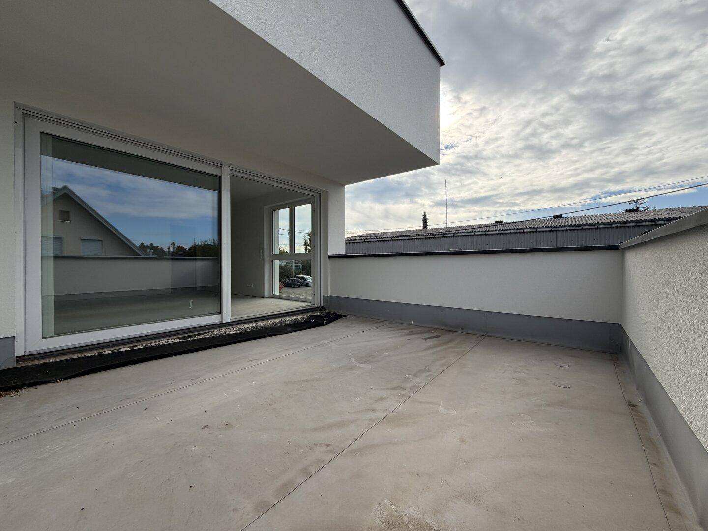 Über einen hellen Vorraum gelangen Sie in den offenen Wohn- und Essbereich. Vom Wohnbereich aus gibt es einen fließenden Übergang auf die sonnige Terrasse. Diese Wohnung besitzt außerdem 3 Schlafzimmer, ein Badezimmer, ein getrennt begehbares WC und einen Abstellraum.
