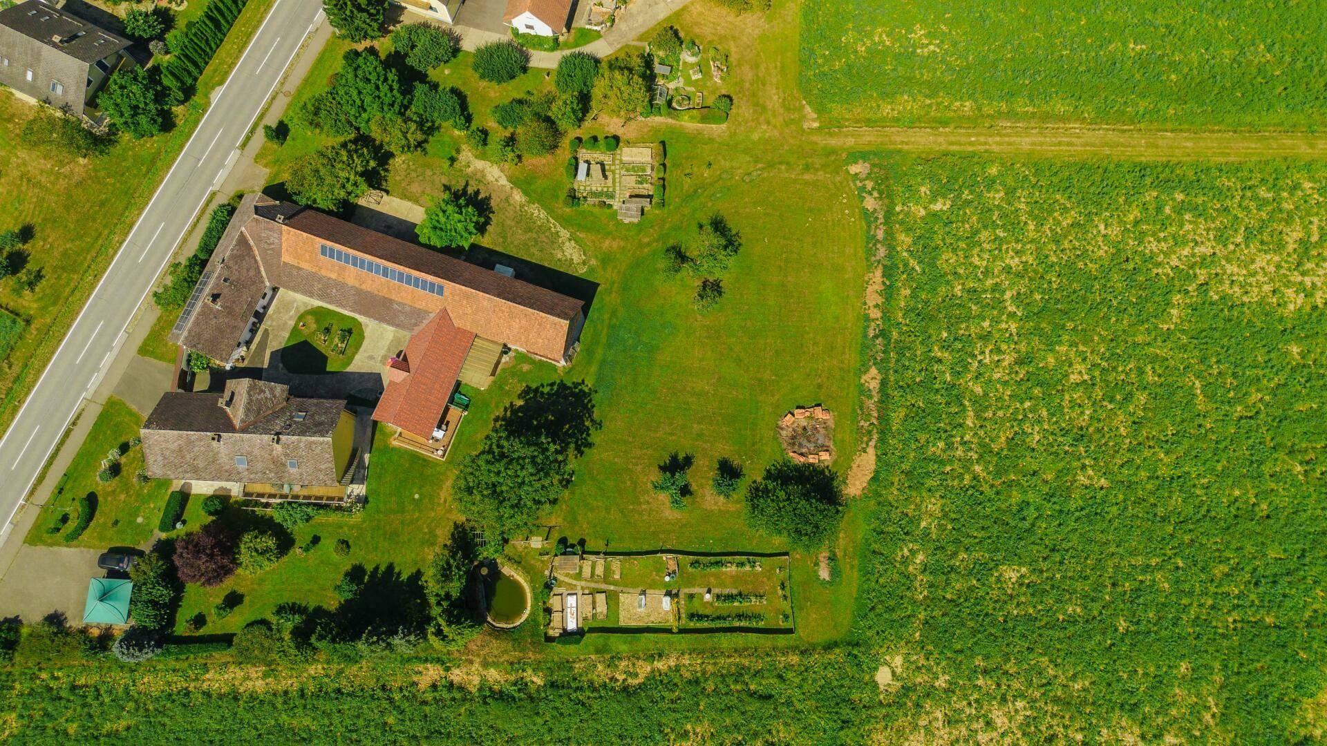 • Freiland/Landwirtschaftsfläche: ca. 1,6 Hektar, flach und bestens für Tierhaltung geeignet