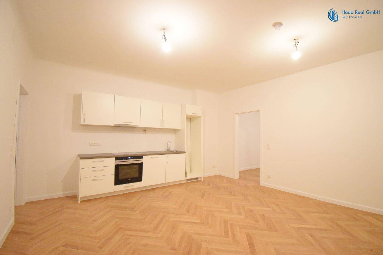 Die attraktive Wohnung überzeugt mit viel Platz und gutem Raumprogramm: Durch den Eingangsbereich gelangen Sie in die großzügige Wohnküche mit Zugang in ein weiteres Zimmer.