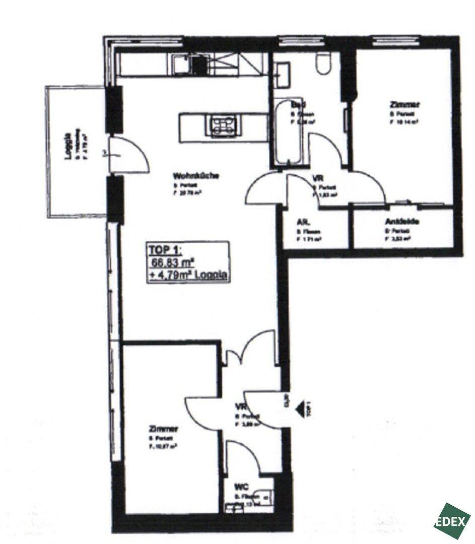 Von der Wohnküche aus gelangt man direkt auf die Loggia (ca. 4,79 m²).