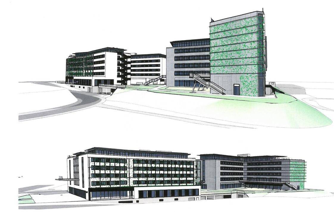 - Bürogebäude mit Geschäfts- und Gastronomieflächen sowie KFZ-Abstellanlagen