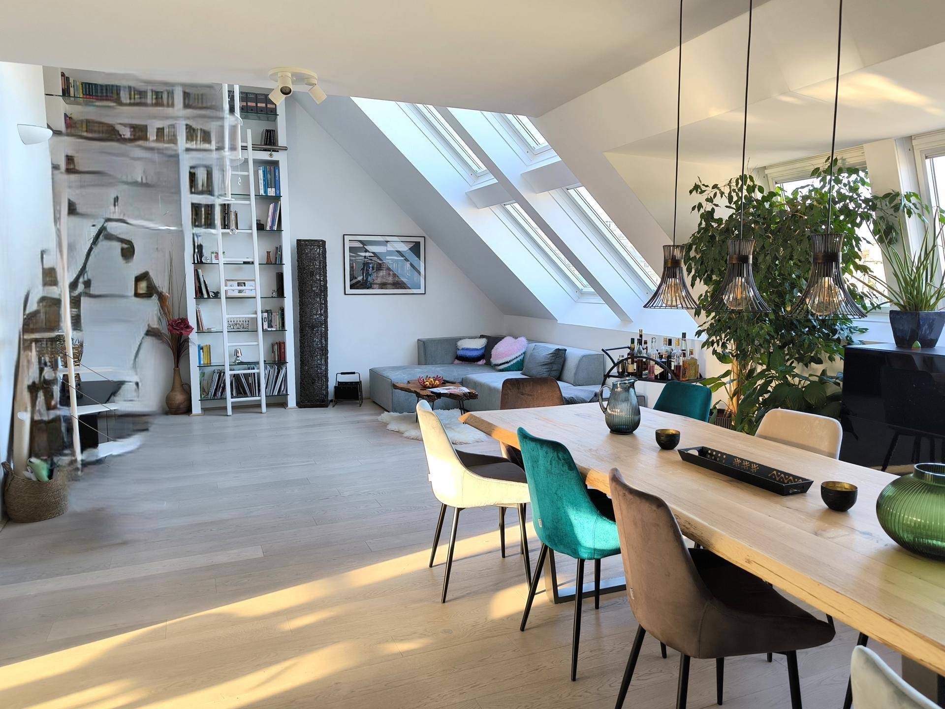 In einem charmanten Jugendstilhaus erwartet Sie dieses außergewöhnliche Penthouse, das historischen Charakter mit modernem Wohnkomfort verbindet. Umgeben von stilvollen Altbauten und einem Park genießen Sie hier Ruhe und einen unverbaubaren Blick über Wien.