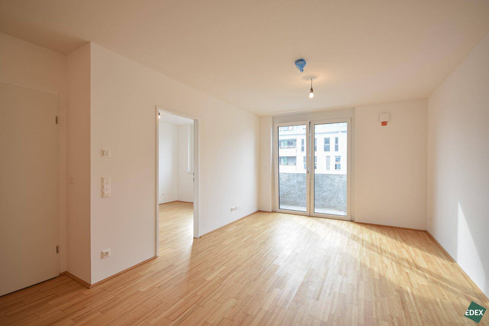 Ab sofort gelangt zur Vermietung eine 2-Zimmer Wohnung in urbaner Atmosphäre. Die helle Wohnung verfügt über einen Vorraum, ein modernes Badezimmer mit Dusche und Waschmaschinenanschluss, ein separates WC, einen großzügigen Wohnbereich mit einer modernen, offenen Küche, ein Schlafzimmer, sowie über einen Balkon. Die 3-fach-verglasten Fenster sind mit elektrischer Außenbeschattung ausgestattet. Die Wohnräume sind mit schönem Parkettboden ausgestattet und die Nassräume mit Fliesen verlegt.