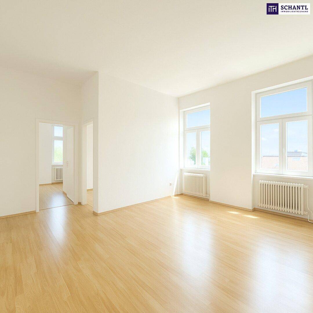 ACHTUNG: Die Fotos von der Wohnung wurden leicht adaptiert um Ihnen die Möglichkeiten dieser Wohnung aufzuzeigen! (Wände, Türen und Türstöcke wurden virtuell weiß ausgemalt, sowie die Küchenmöbel entfernt)