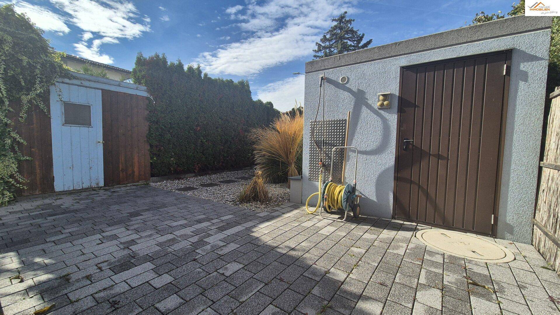 Die große, gepflegte Terrasse und der Balkon sind optimal Richtung Süd/West ausgerichtet. Eine Garage und ein kleines Gartenhaus auf Eigengrund runden das Angebot ab.