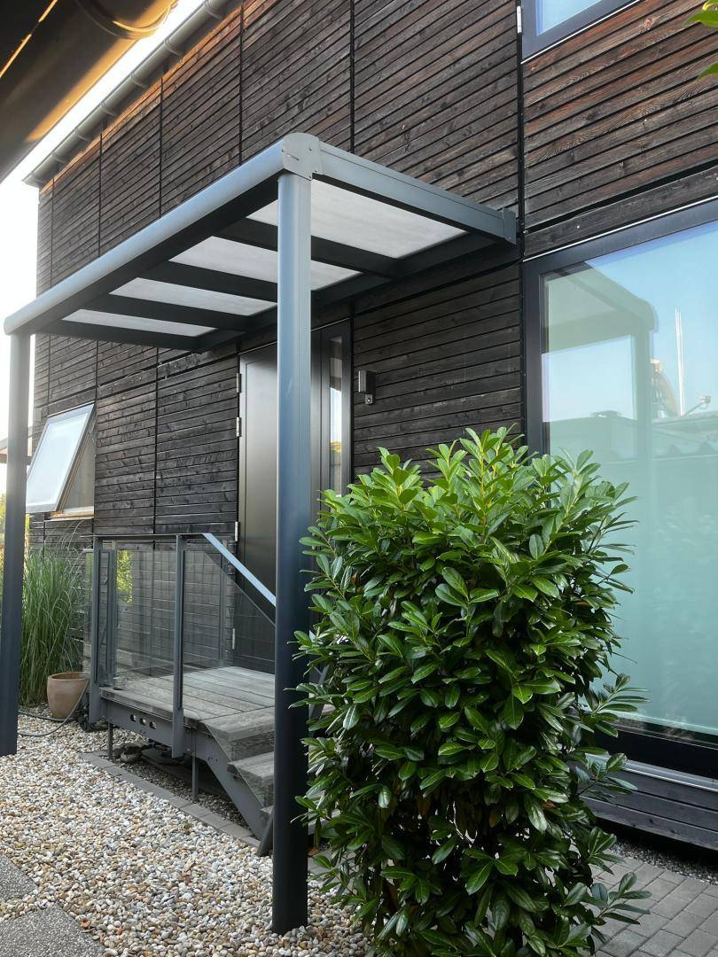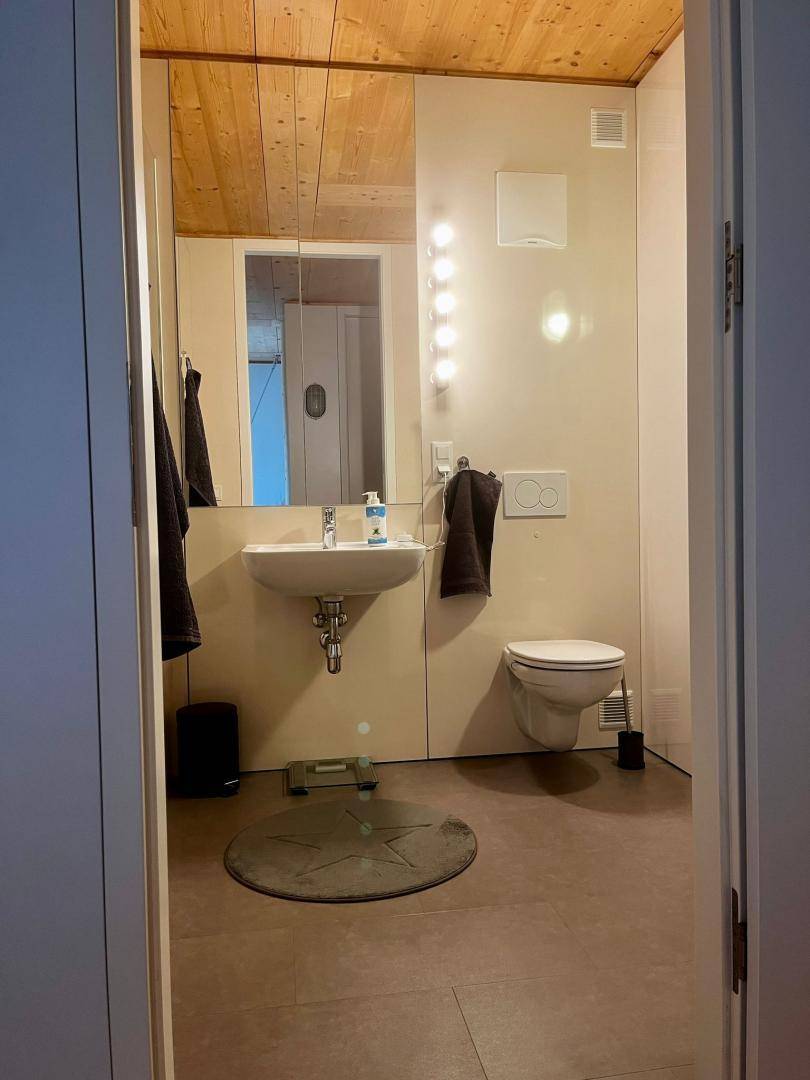 - Zusatzverbau in Containerbauweise (~25 m²), derzeit als Fitnessraum genutzt, mit weiterer teilüberdachter Terrasse