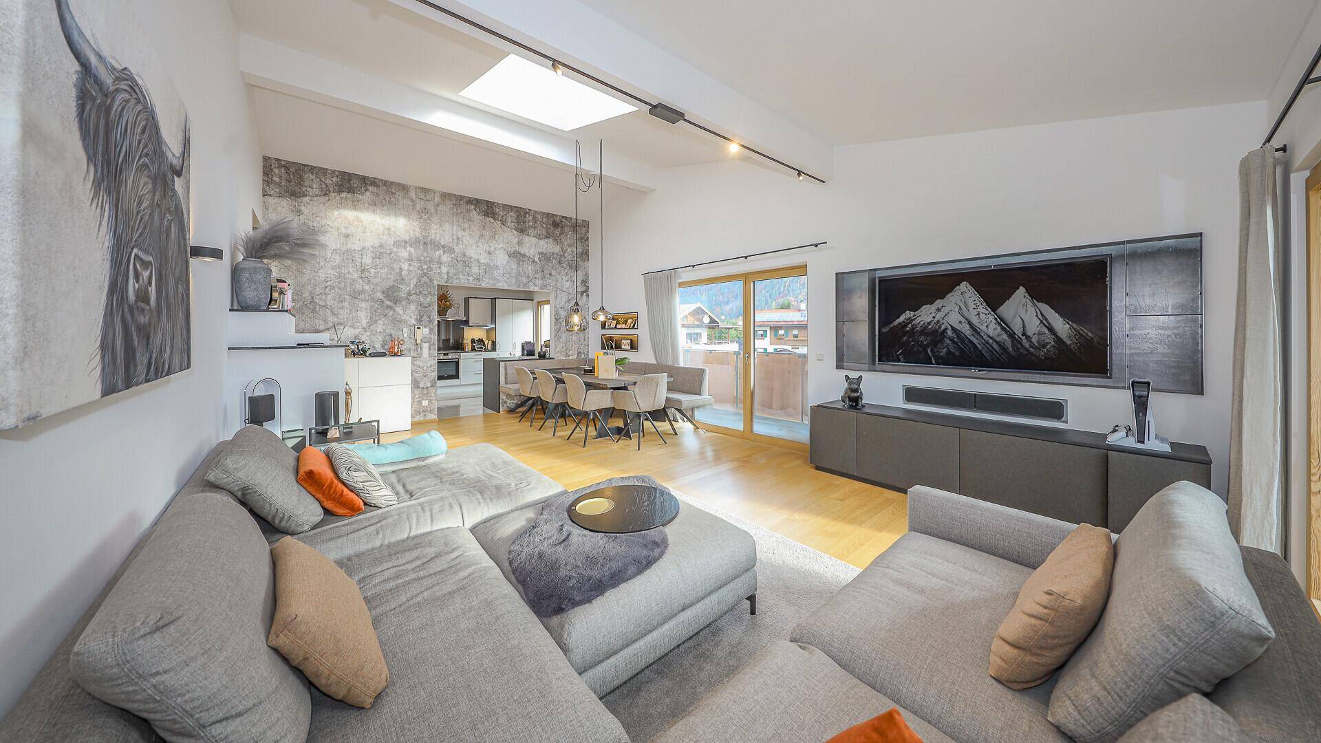 Zum Verkauf steht ein 112 m² großes Penthouse mit traumhaftem Ausblick auf die Loferer Steinberge.