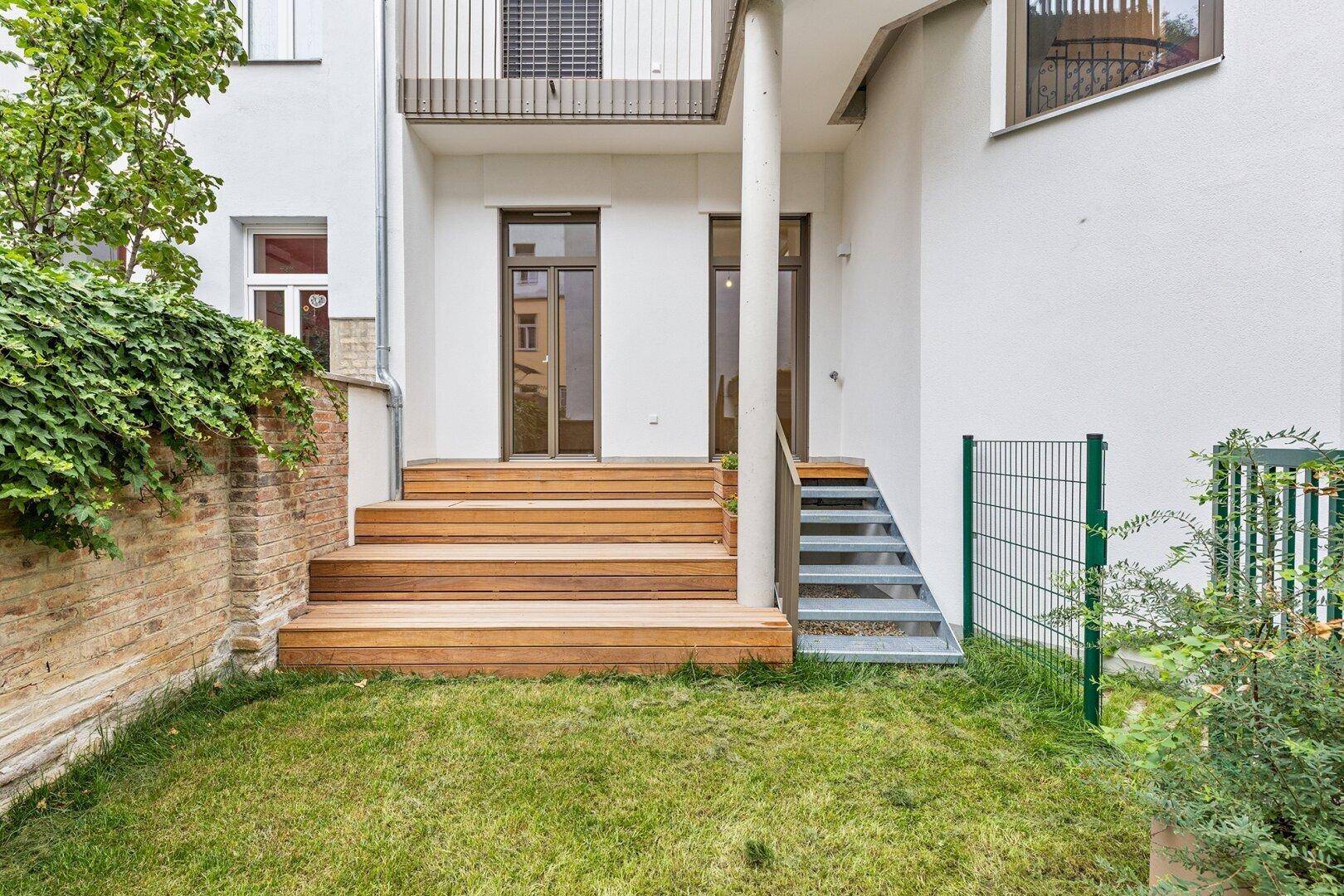 In einem generalsanierten Spätsecessionshaus (BJ 1913–1914) entstehen 22 hochwertige Wohnungen mit Größen von 37 bis 150 m², teilweise mit Balkon, Terrasse oder Garten.