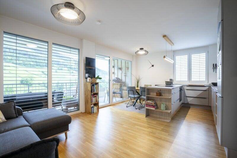 Diese moderne 3-Zimmer-Wohnung (2. OG) mit Baujahr 2020 überzeugt durch ihre hochwertige Ausstattung und einen traumhaften Blick auf die umliegenden Berge.