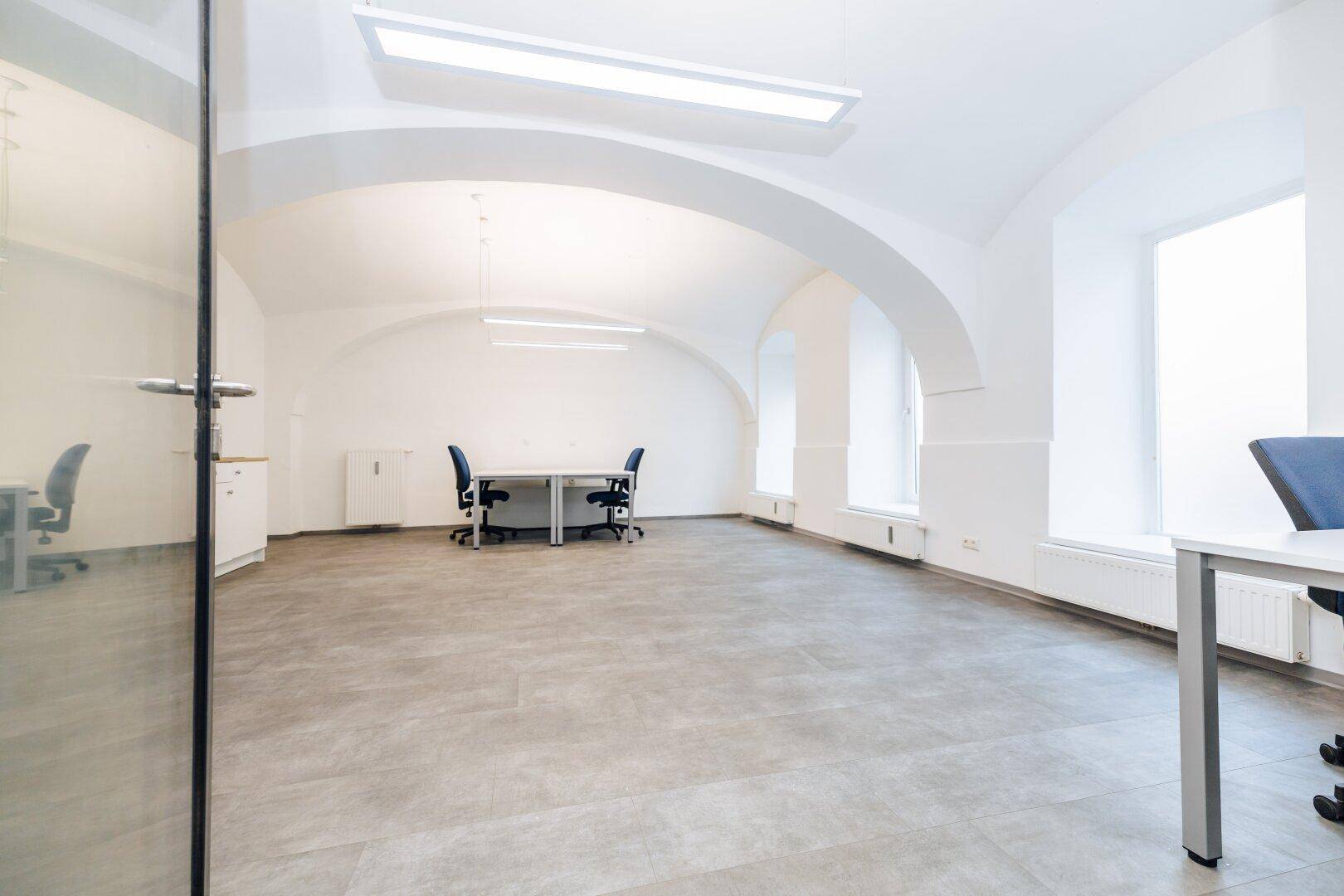 Ein weiteres Highlight ist die großzügige Glasfront zur Straße, die nicht nur für ausreichend Tageslicht sorgt, sondern auch als Auslage genutzt werden kann – perfekt, um Ihre Marke oder Dienstleistungen optimal zu präsentieren. Der offene Charakter der Räume schafft eine angenehme Arbeits- und Kundenatmosphäre.