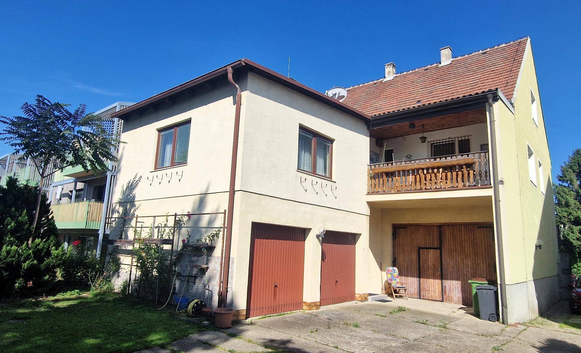 Die Liegenschaft verfügt über 7 Zimmer, 2 Badezimmer, Loggia (ca. 12 m²), 2 Garagenstellplätze sowie rund 100m² Lagerfläche.